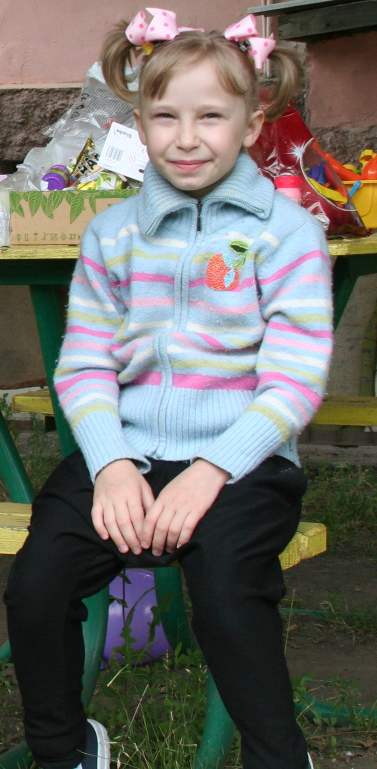 В прошлую поездку, та что в марте у нас была, ее не было. Я честно сказать, когда узнал, что ее забрали в семью, был рад за нее. Потому что очень она симпатиШШная девчушка. И взгляд у нее такой проникновенный. Очень взрослый!
