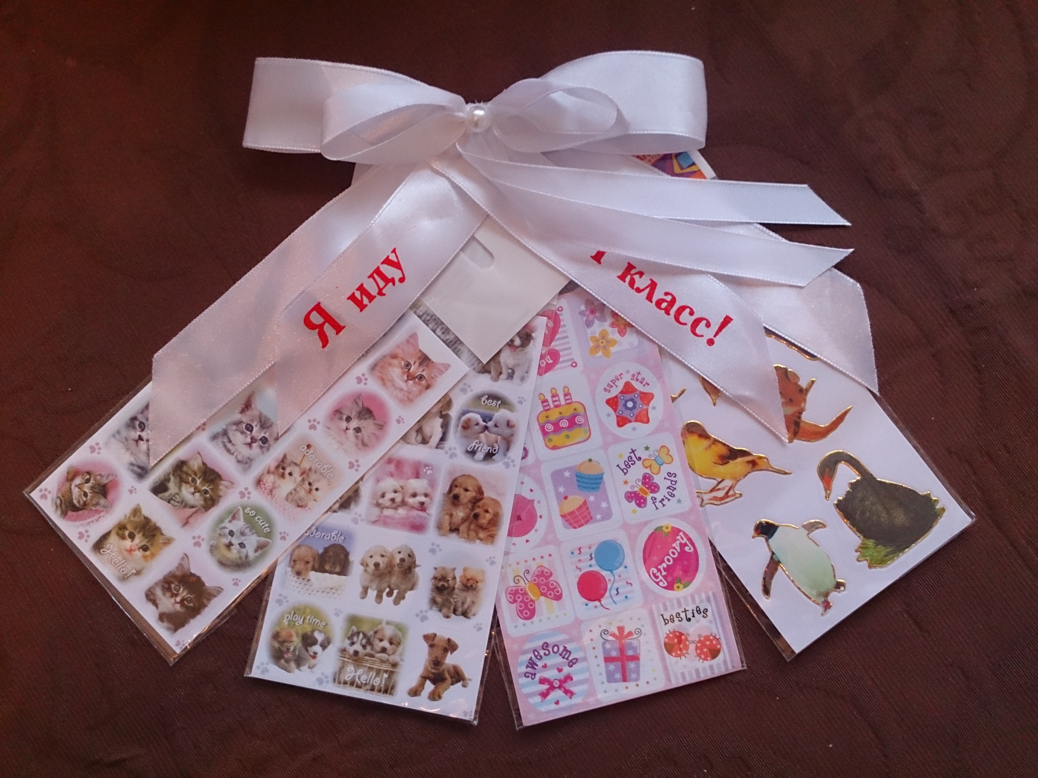 наклейки и умилительный бантик "Я иду в первый класс"