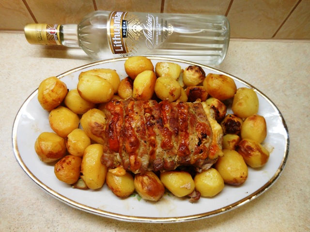 Берём 1 кг. спинной части свинины,делаем надрезы по 1 см. В енты надрезы набиваем нарезаный дольками ферментный сыр и дольки "свежих зимних" помиров!