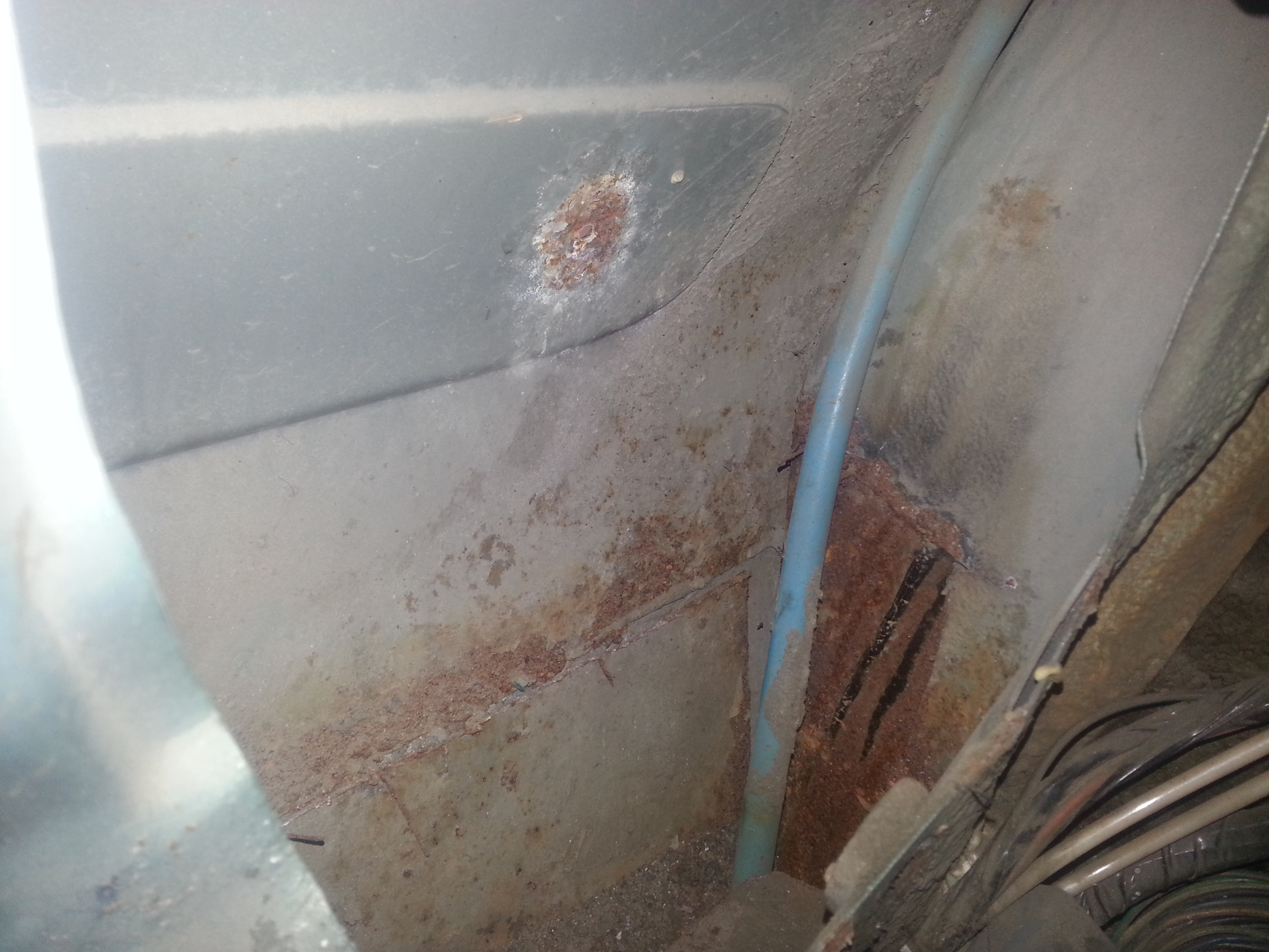 Авария случилась))) Еще до того как ее купил. Был удар в правую сторону морды (телевизор, панель под фильтром). Вытянули как смогли, но там все ржавое как сито. Плюс ко всему видимо еще задним крыльям досталось, так как их переваривали участками, но сделали это через ж..у. Фото для наглядности.