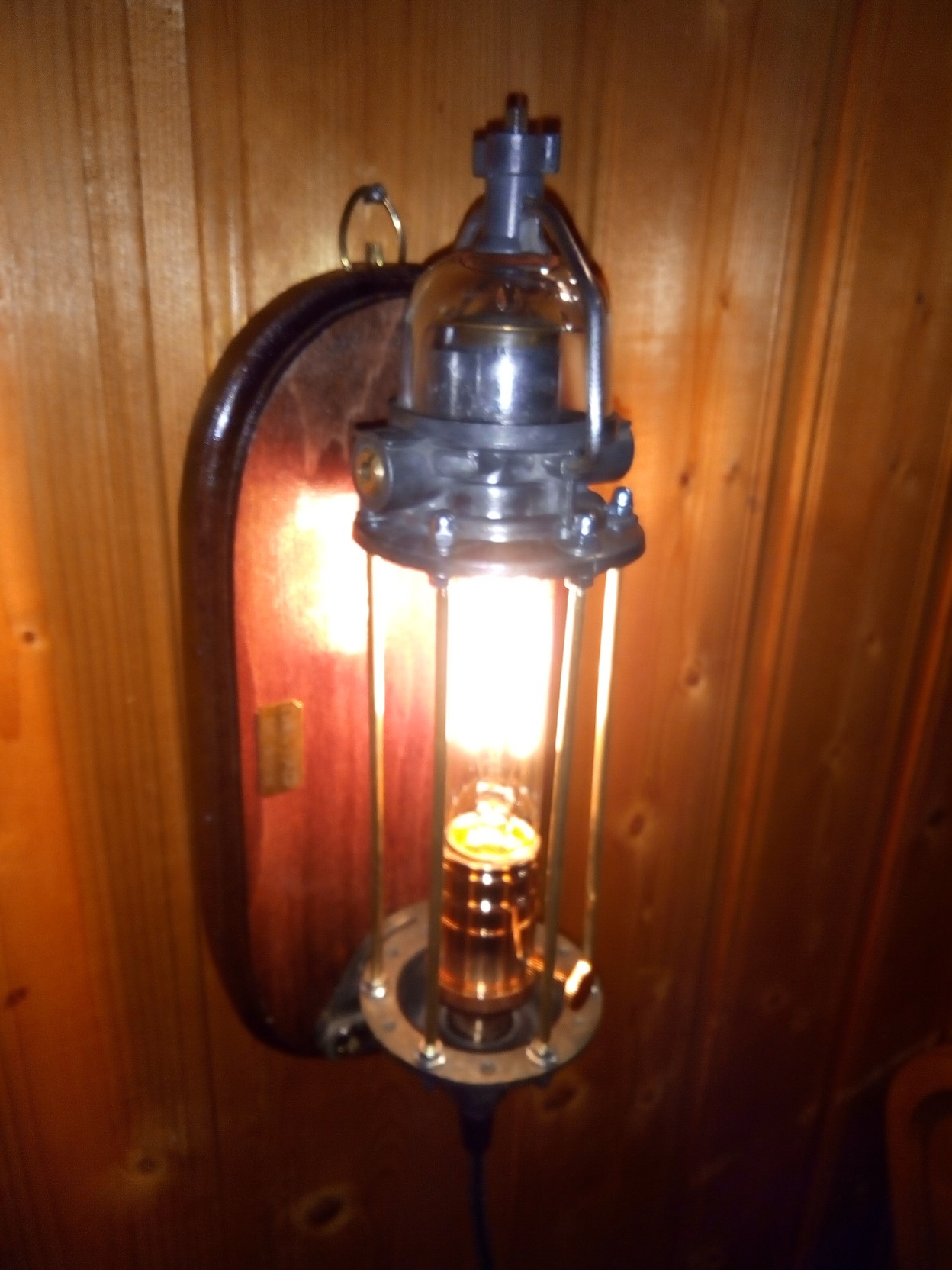 Лот № 1. Бра - бензонасос ГАЗ М 20. Основание - мореный бук, латунный патрон с функцией выключателя, лампа Эдисона, матерчатый ретро провод. Цена 12500.