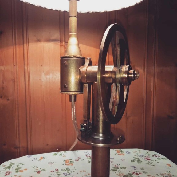Лот №3. Настольная лампа из части бронзового навигационного прибора XIX век. Основание - мореный бук, Латунный патрон со встроенным вентилем-выключателем, матерчатый ретро провод. Цена 12000.