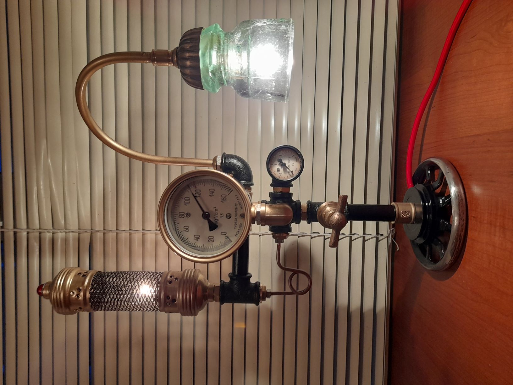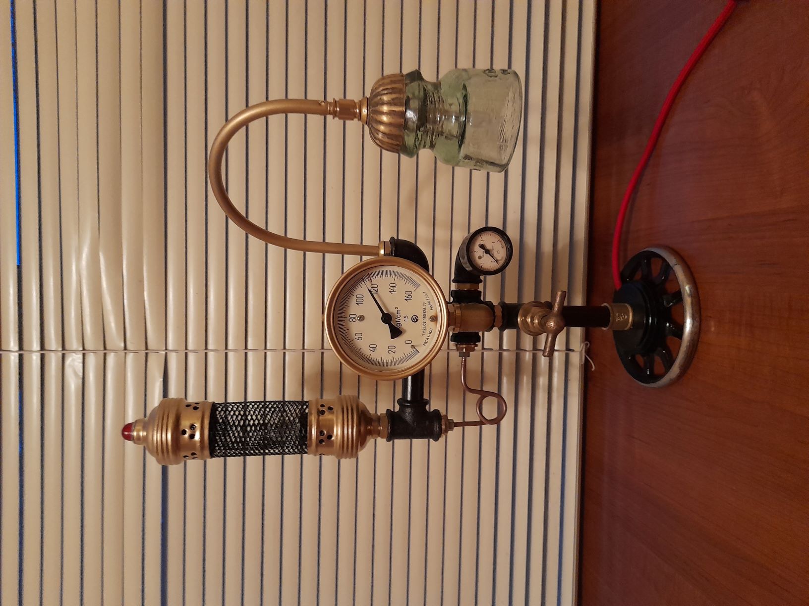 Всю зиму копил запчасти и всякие приятные ништяки с блошиного рынка и вот - первая в этом сезоне работа: стим-панк лампа.