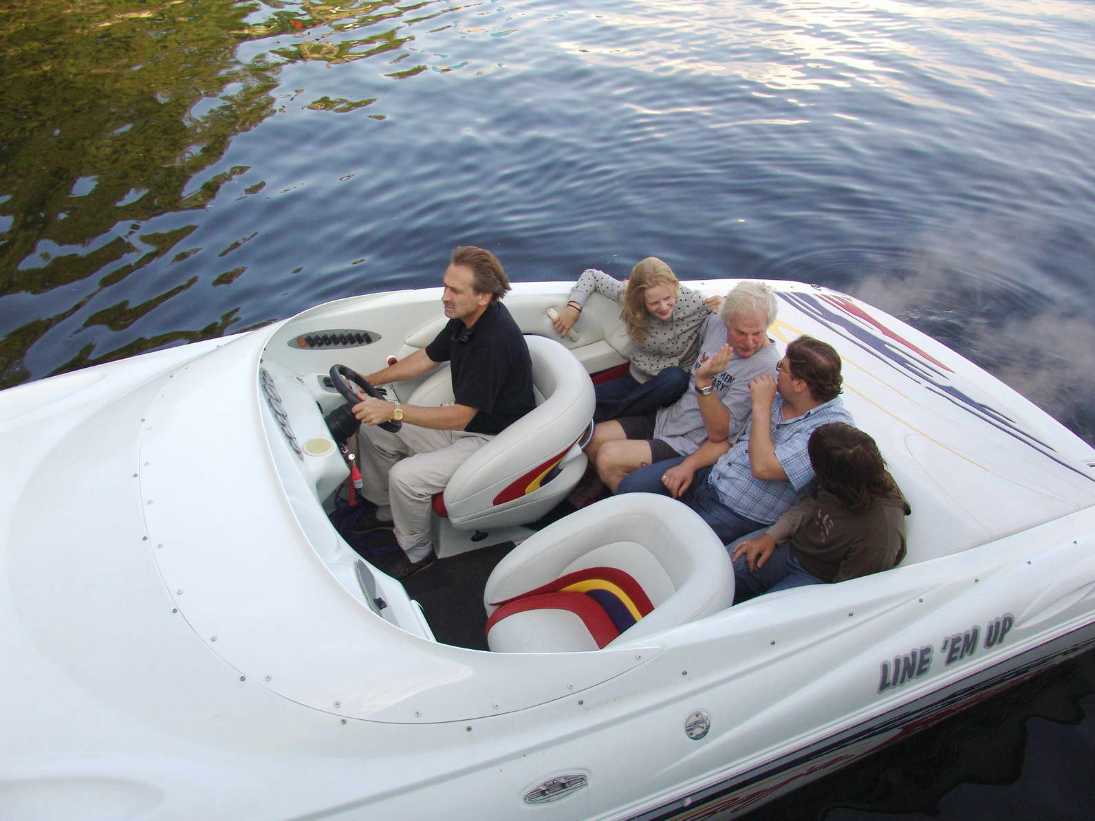 если вы посмотрите на другие катера то у них у всех рулевое управление находится справа, к тому же удобно правой рукой управлять трансмиссией и газом, поскольку рукоятки управления находятся на борту катера, а не посередине как в авто.