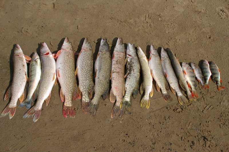 В последующие 2 дня дул ветер не самый слабый, а за ним на 2 дня пришел дождь. Клев был слабый, но на уху и жареху наловливали все равно. Так что без рыбы не сидели и по вечерам поплевывались рыбьими костями. После дождя выглянуло солнце, ветер стих и щука начала хорошо брать, но буквально 2 дня. Вышел даже жерех, но котлов на нашей акватории было всего 2, и те были очень не устойчивые. Поймали всего пару штук до килограмма. Так прошла первая неделя.
