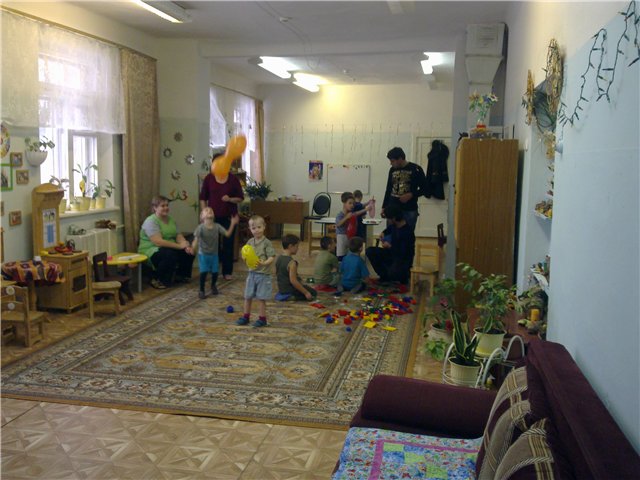 Нам, как всегда рады. Потихоньку перетаскав коробки и пакеты по скользкой лестнице, рассортировали "подарки" и разбрелись по группам. Сначала на первом этаже, потом перешли на второй. В первой группе, я опять побеседовал с воспитателем(не знаю как её зовут)с которым разговаривал в прошлую поездку на предмет "актуальных" нужд ДД. Прошлись по предыдущему списку, кое чего вычеркнули, кое чего добавили. Видно, что она(воспитатель) искренне "болеет" за детей и ей действительно "интересно" с ними заниматься. Ребята конечно же рады гостям, чего то там орут, тащат каждый за собой, хвастаются подарками. Шум, гвалт, возня. В общем, для них, это конечно же целое событие. В других группах явно не тише. Надувные шарики - хит сезона, а если учесть что насос оказался почему то один, собралась целая очередь, даже подраться успели. К слову сказать, все детишки одеты, выглядят опрятно, даже разглядели на них обувь, которую привозили в прошлый раз. Мальчиков заметно больше девочек, в одной группе вообще одни мальчишки. В старших группах, дети в большинстве обычные ребятки, особых отклонений не заметно. Видно как с возрастом и заботами воспитателей, детки меняются в лучшую сторону.