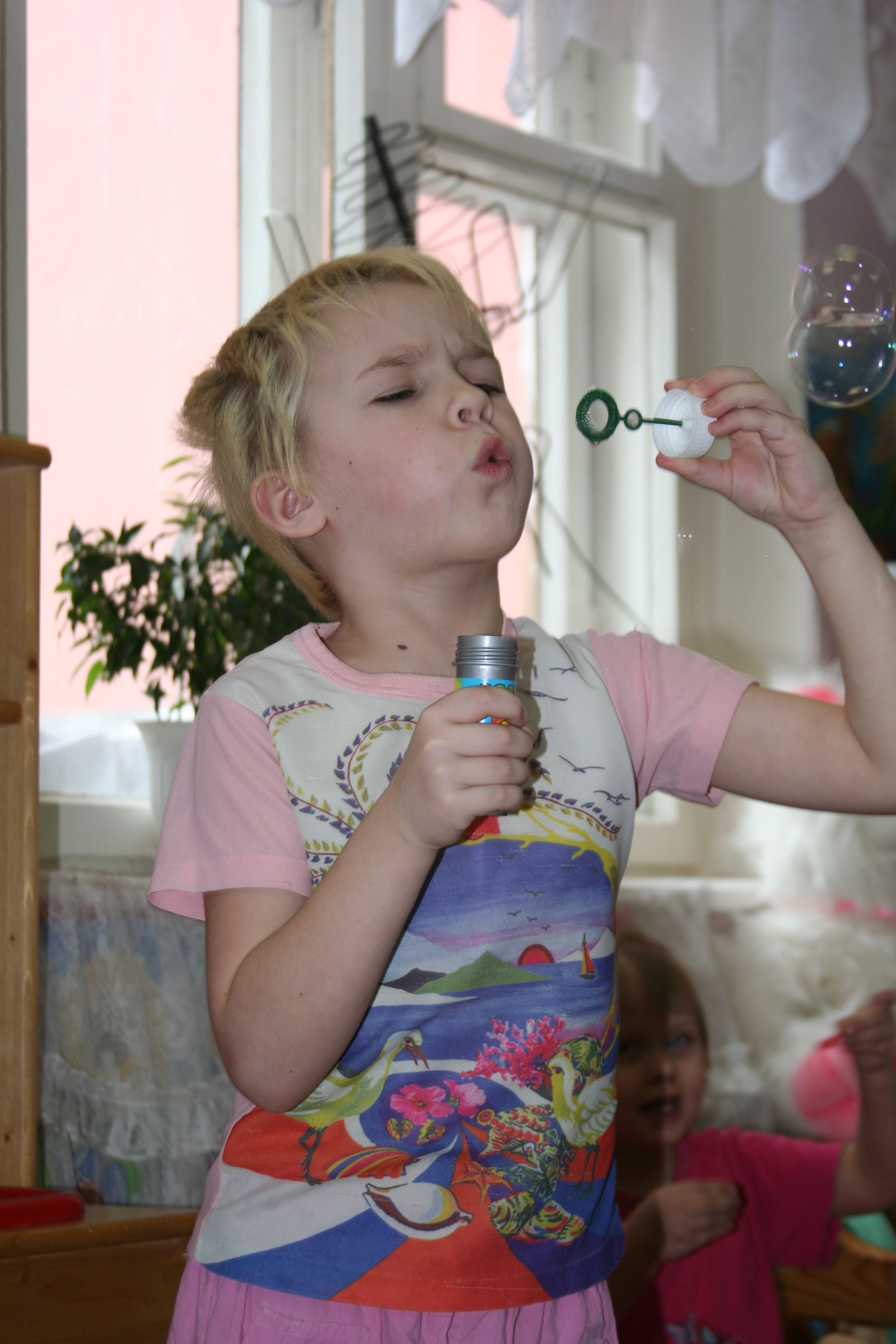 Наиболее ответственные участники поездки (Делер и Миллер) не отрываясь от надувания шариков и создания будущего фотоотчёта, успевают обсудить с воспитателями насущные проблемы каждой конкретной группы. Менее ответственные (Рокер и я), дуют на "вертушки" и, время от времени, затевают между собой дуэль на мыльных пузырях.