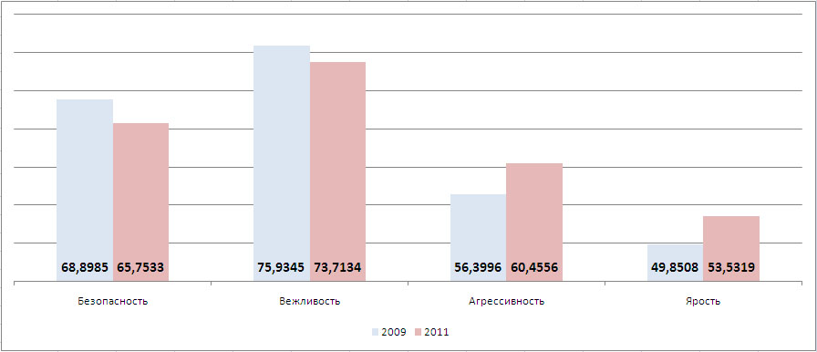 -5% Ярость Тоже похоже на правду – стал старше и опытнее за эти два года, машина одна и та же, второй ребёнок появился … вот и ярости меньше, безопасности и вежливости больше! А вот агрессия растёт судя по всему из-за тенденций в первой части сообщения