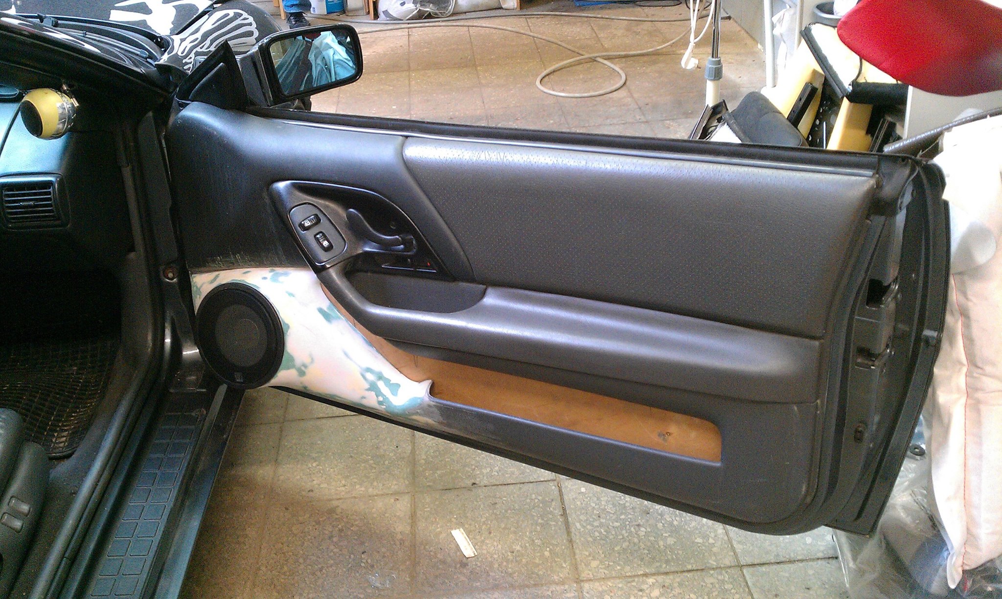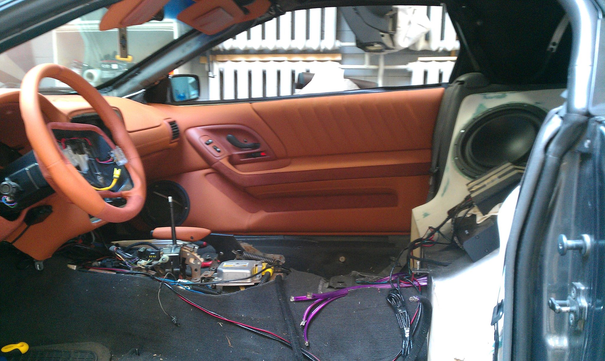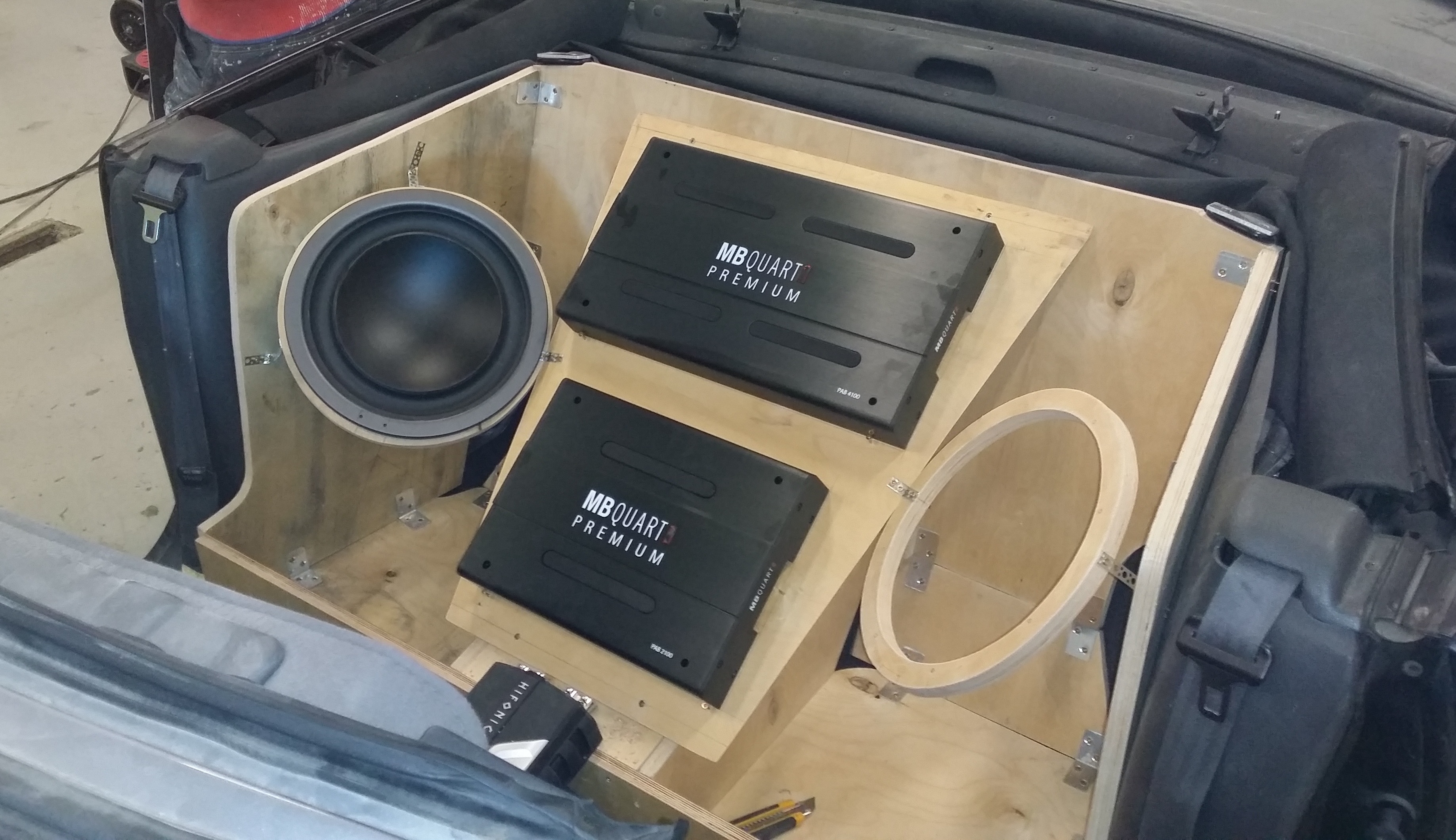 Последней модификацией стал полностью переработанный интерьер. Салон перешит итальянской автомобильной кожей, в сочетании с алькантарой (потолок включительно). Пепельницу убрал =]]]. Вместо штатной головы установили Android-планшет, играет все loseless форматы. С него звук по оптике на процессор Rockford Fosgate 3SIXTY. Спереди ВЧ и мидбасы MB Quart Q-Line с заявленной немецкой ручной сборкой. Ну и наконец вместо задних "кресел" всадили подиум под 2 саба + на нём расположились 2 усилителя, 2-х и 4-х канальный. Всё от MB Quart. Вибро- и шумоизоляция присутствует в полной мере.
