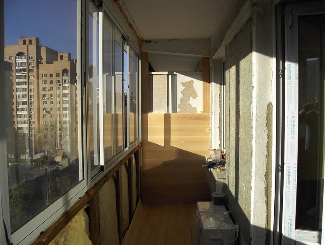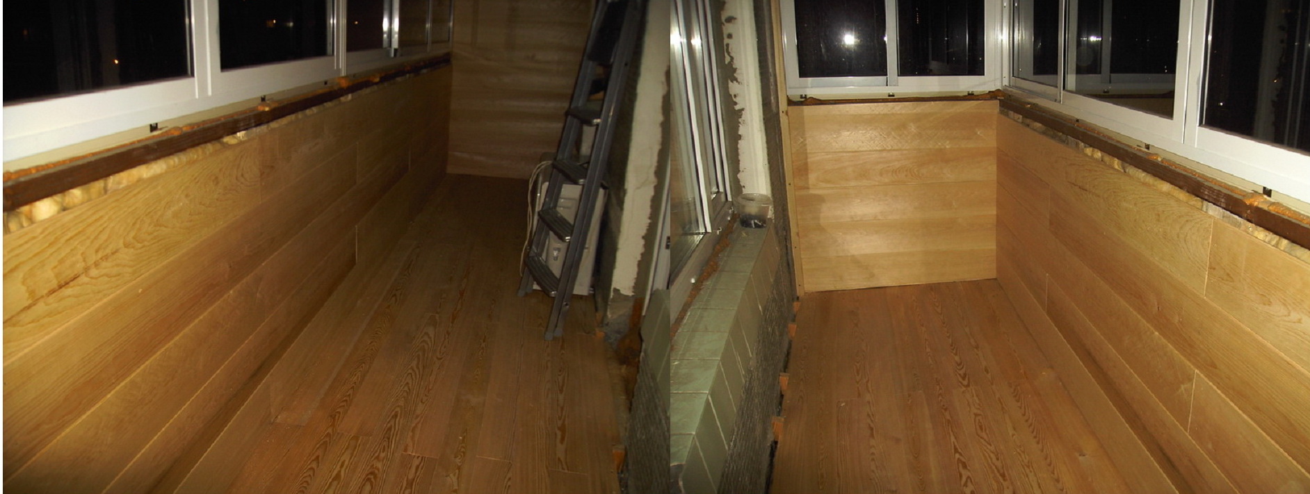 Необходимо выполнить внутреннюю отделку балкона, (настил пола, потолок, стены) балкон застеклен.