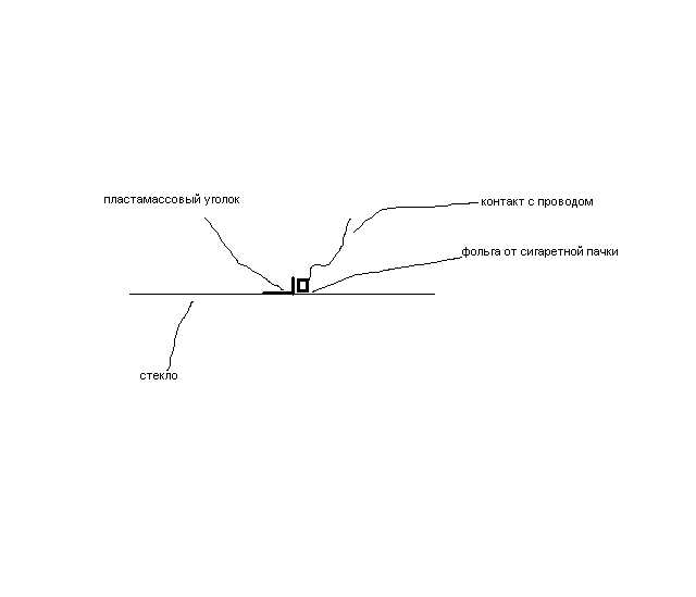 смотри - у тебя 2 контакта - один на стекле, второй на проводе. берешь пластмассовый уголок (я обточил - 5-6 мм клеится к стеклу, 3-4 мм, ширина - около сантиметра) и клеишь к стеклу где-то в 1 мм от контакта, соотв. стекольного. когда клей схватится, к этому уголку приклеиваешь контакт, который на проводе и плотно прижимаешь к стеклу. на контакт, который на проводе, можно паяльником припаять небольшую шишечку, чтобы лучше контакт был. я, правда, схалтурил (не был уверен в конечном результате) и вместо припайки просто проложил фольгой от сигаретной пачки
