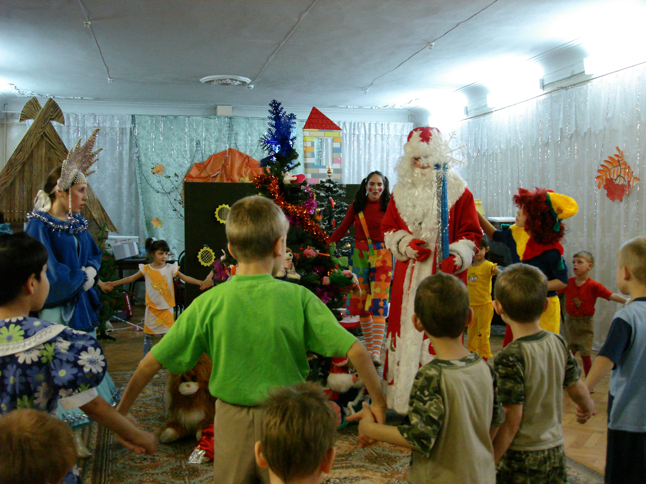 Деду морозу 18 лет,но он уже с бородой и усами.Клоуны наряжены,наш талант Аркадий скачет у елки с разрисовкой на лице,Снегурочка тренирует странные танцы у посоха деда Мороза и пытается сразится с ним на мечах,довешены последние игрушки...и вот мы уже слышим шаги на лестнице и веселые детские голосочки "приехали-плиехали","праздник-плаздник".