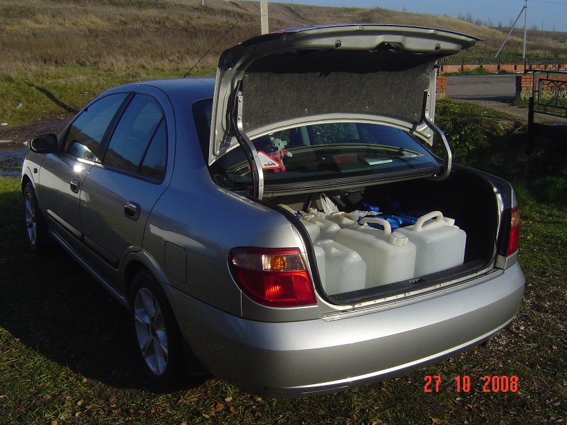Вот собственно возможности багажника Алмеры - около 130 литров воды в канистрах и все... И это мало, т.к. возим на 3 семьи - себе и родителям. А еще нужно брать на отдых автохолодильник, мангал разборный, шашлыки-машлыки, детские всякие вещи... В салон это не положить, т.к. нас с женой 2-е, ребенок в автокресле и еще могут родственники присоединиться!