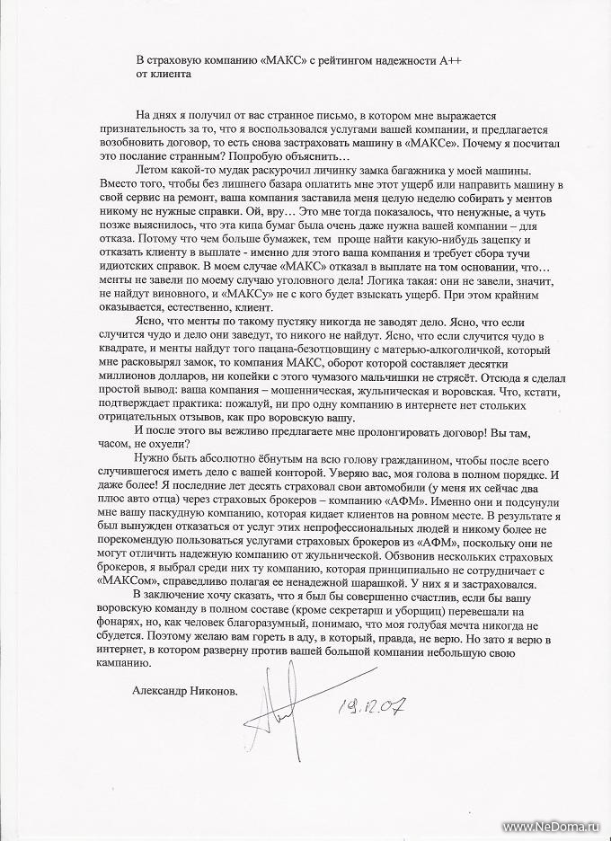 С интересом ознакомился с Вашим заявлением и приложенными к нему документами. Был бы готов принести извинения за ДТП, которое произошло по моей вине, но воздержусь от этого, поскольку никакой вины за собой не ощущаю.