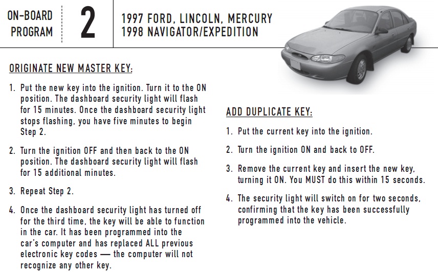 1) Программирование нового ключа без использования уже запрограмированного.
