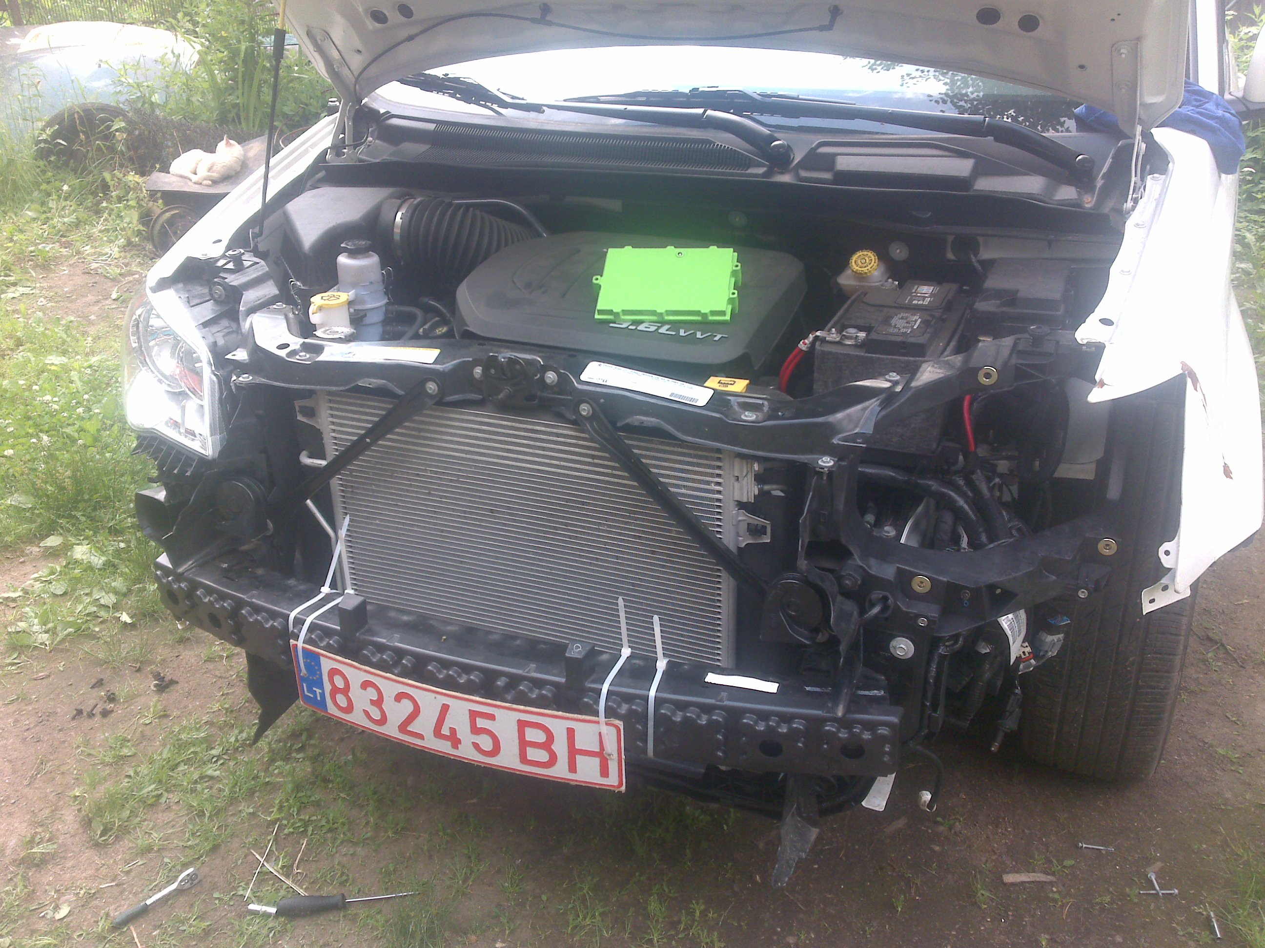 Начал делать машину. Трещина вверху "телевизора" радовала, но при снятии фары оказалось что он весь в кусках. Хорошие друзья гарантировали всё восстановить, но я вчера нашёл единственный в наличии в Минске новый, правда Таивань. Радует то что кузовные все в идеале и писдюля реально прошла в фару, правда цепанула крыло и кромку капота. Капот сегодня рехтанули, повесили новую оригинальную фару. "Телевизор" хоть и конченный узкоглазый тайвань, но стал хорошо. Бампер уже готов. Заодно (поскольку было всё разобранно по переду) кое-что доработал: