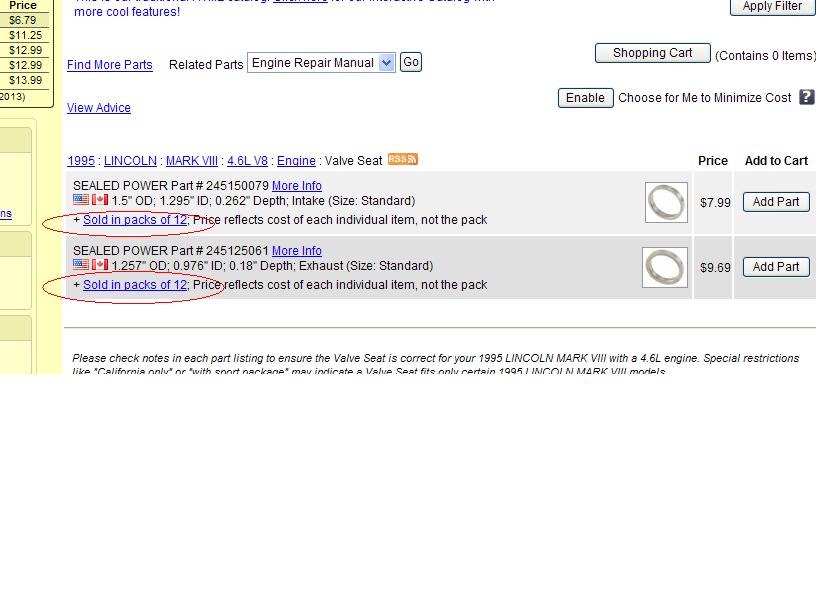 Это не комплект, это упаковка производителя. Если дохлых седел каждого вида больше 12ти, придется покупать по 24, что есть перебор. Вот поэтому рокавто - не единственный источник з/ч, а в том числе и место, где можно посмотреть, что вообще бывает. Посмотри на любимом многими саммите (http://www.summitracing.com), или у вуди (http://www.woodys-auto-supply.com), или у тех же динозавров (http://www.partsdinosaur.com, через посредника).