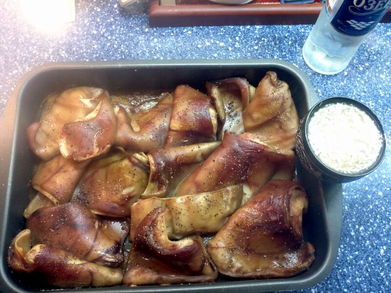 Достаем и жрем этот деликатес, мокая в соус, под водку соответственно.