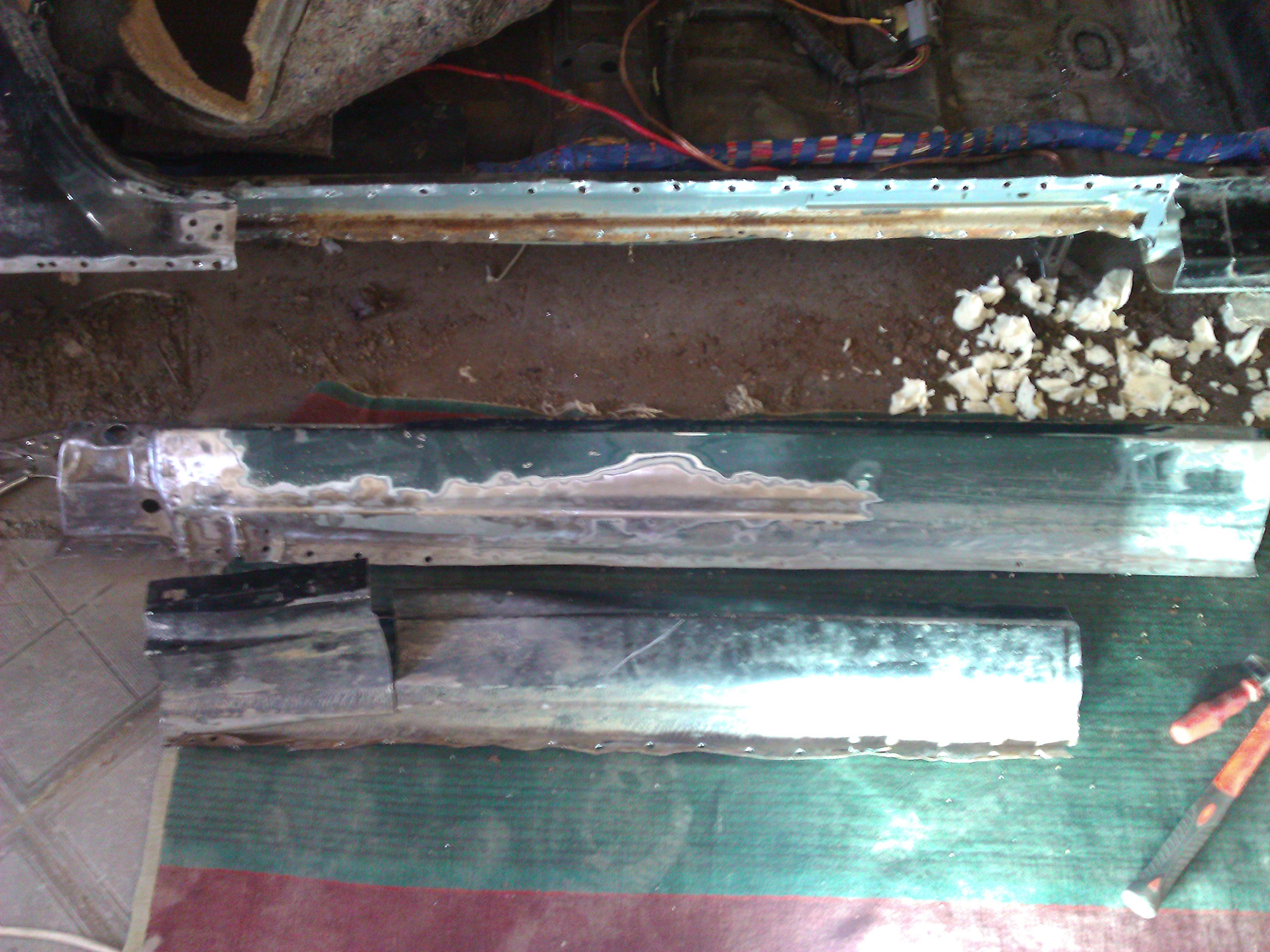 Итак, за сегодня успел до конца снять старый мятый порог, убрал ржу, подготовил. Новый порог до конца востановил и тоже подготовил. Завтра буду примерять его вместе с дверью от зелёного донора так как она не мятая, не ржавай и самое главное заводские ручки, не то что у меня кто то вкорячил с девятки евро гавно. А вот с правой чуть по другому придётся поступать. На доноре она сгнила снизу, моя же наоборот в нормальном состоянии поэтому было решено переворить просто место под ручку с донорской двери.