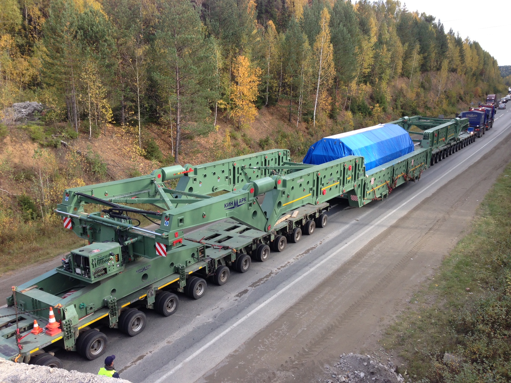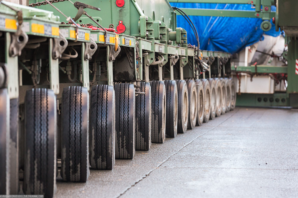 Хм... Насколько я понимаю, вся вот эта невьеб..нной длины конструкция на хуе..ой туче колёс лишь ради той относительно небольшой бздюлины, которая накрыта тентом и без проблем поместилась бы на стандартную фуру (по размерам)? Что же там за хня такая, учитывая надпись ИНТЕР РАО ЕЭС? Это вопрос так, риторический