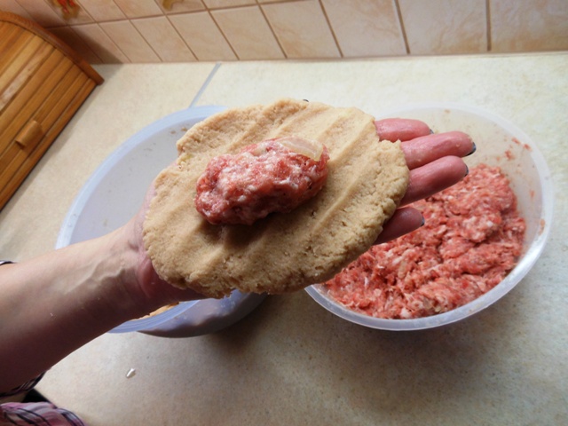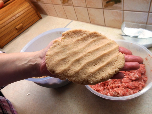 Из полученой массы лепим на руке (так удобнее) такой как бы блин если можно так назвать.