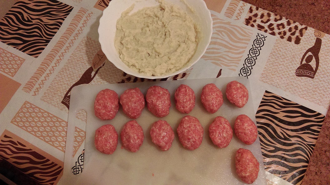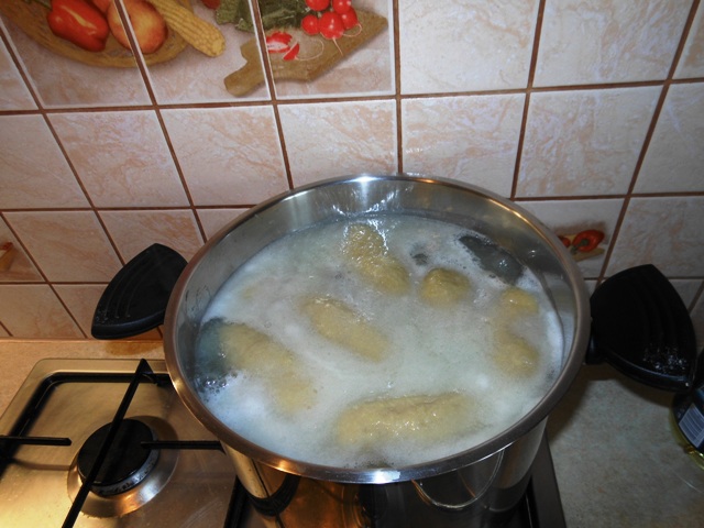 Слепили,кладём в кипящую воду. И варим на медленном огне 45 минут.