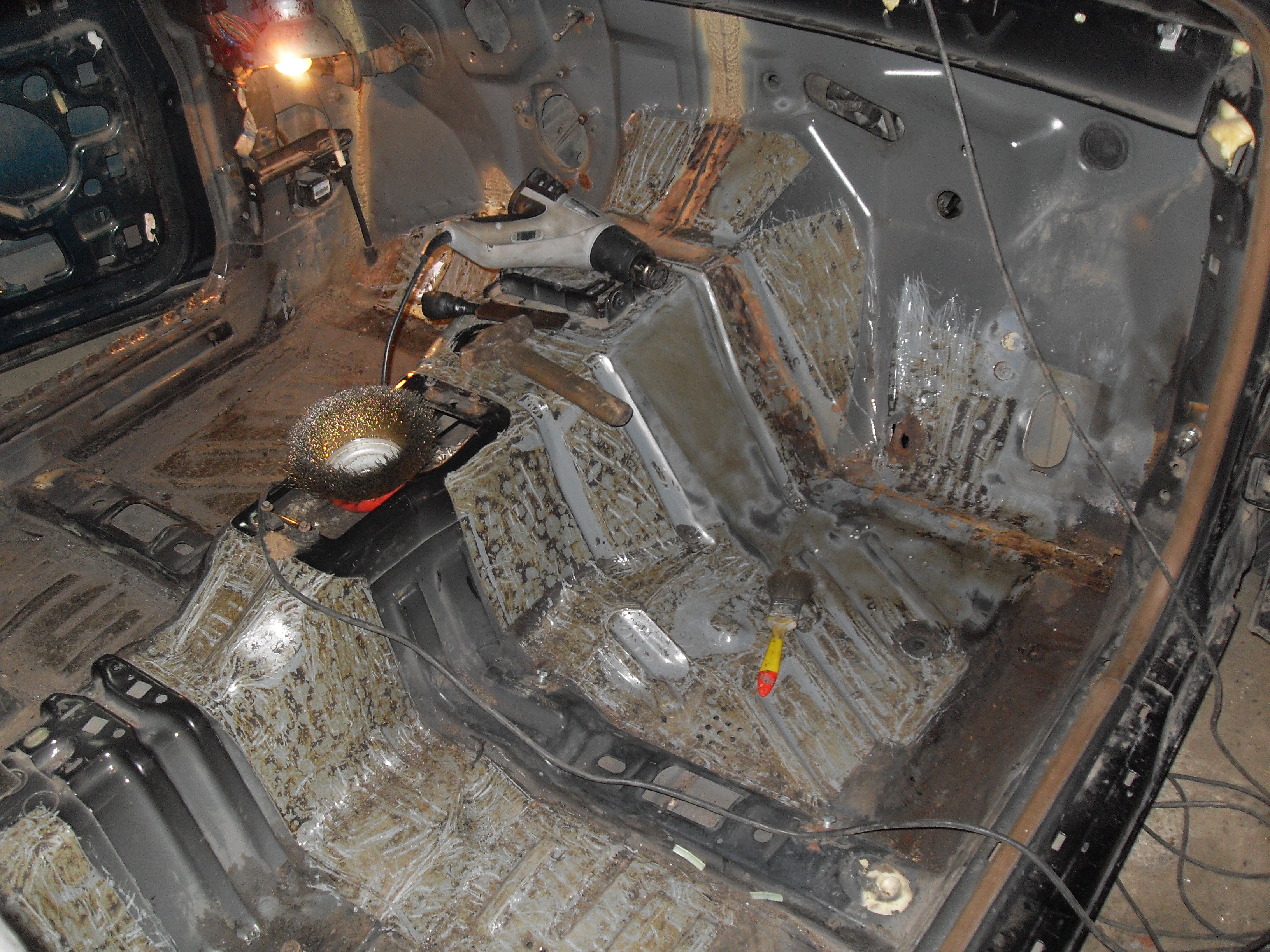 Ох и запарился я весь салон отдирать от заводской вибры. Сначала с феном отдирал, потом все проходил обезьяной с щёткой, потом растик и тряпка в помощь для окончательной чистоты, далее покрыл всё цинкарём и дал постоять ночь, далее опять обезьяна с щёткой и растик с тряпкой. Насчитал 4 дырки и так пару мелочёвок в остальном дно в салоне на твёрдые 4+. Сейчас салон на стадии заваривания как всё полностью заварю выложу фото.