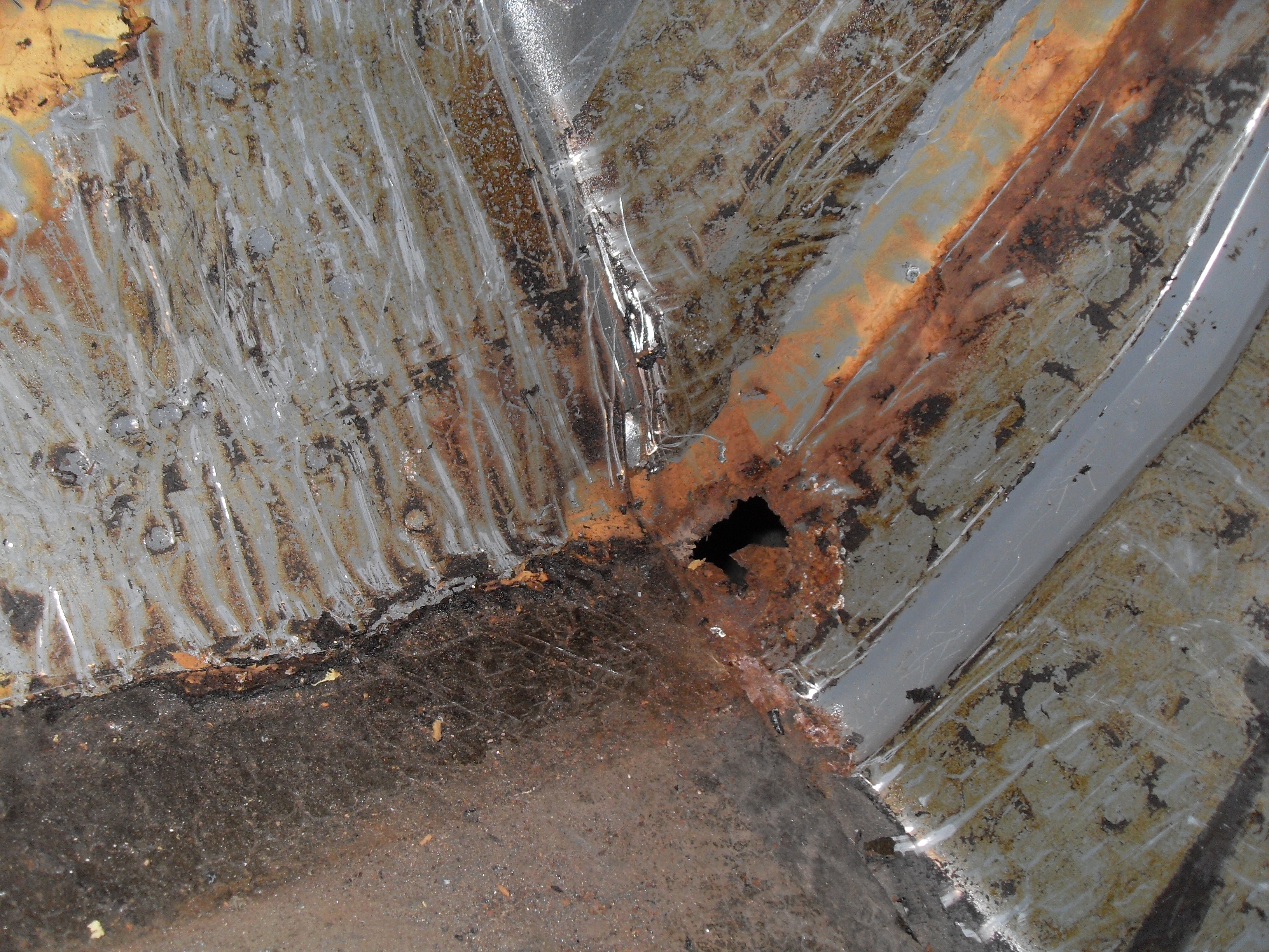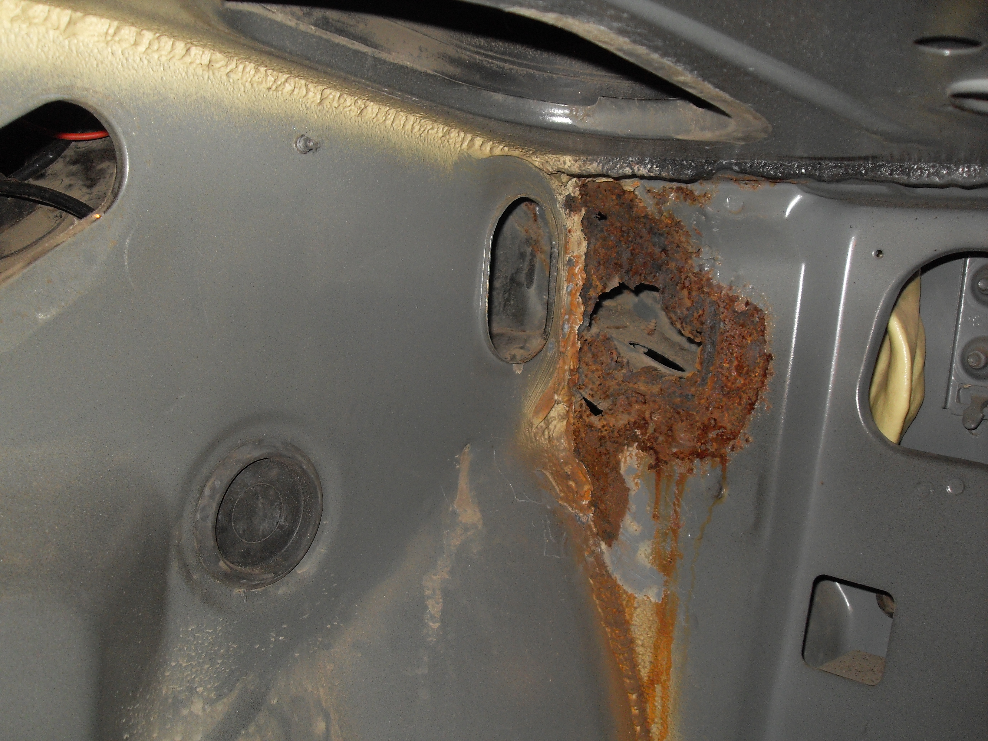 Нам смертным вообще никогда робота не купить. Естественно не буду же я пол кузова разрезать и разбирать для того что бы точечным аппаратом подлезть к какому-нибуть усилителю. Можно и полу автоматом в таких случаях обойтись. Ну например вот карман багажника правый. Внизу сгнил, гнилой участок был вырезан и изготовлен новый. На фото чёрным отмечен шов. После вся деталь была защищена до металла и прогрунтована. Как то так.
