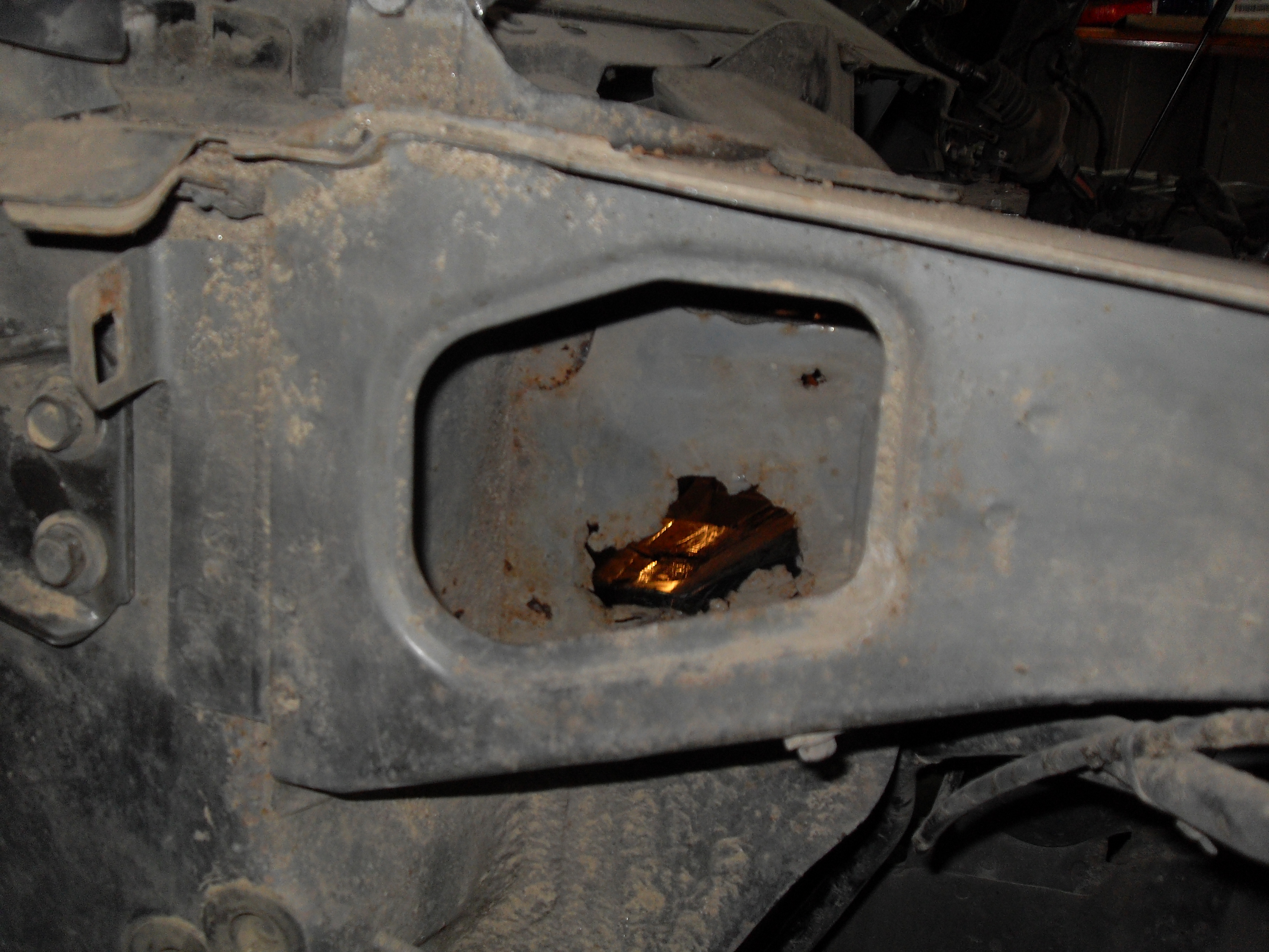 Там идёт три слоя металла и все они изрядно сгнили и долго думая как всё восстановить именно до заводского состояния, а не просто сверху латку прилепить и приворить где получится решил полностью снять усилитель всё сделать как полагается и приворить его обратно. Тем более на нём тоже в одном месте есть гнилое место размером с палец.