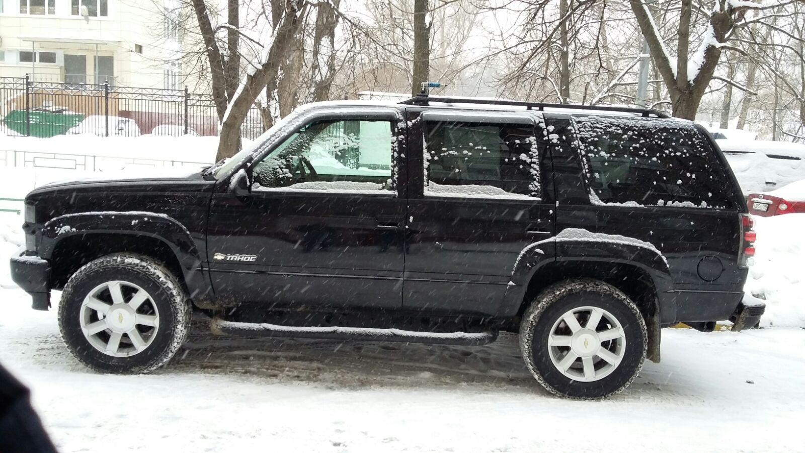Таха ездила на покраску в Ригу своим ходом, снимали кузов с рамы, поправили ее, почистили и покрасили, кузовщину сделали от и до, пол залили жидкой резиной и проварили где требовалось, вобщем работы было много, обошлось в 130 000р. + Новая зимяя резина на шевролетовских дисках. Фото: