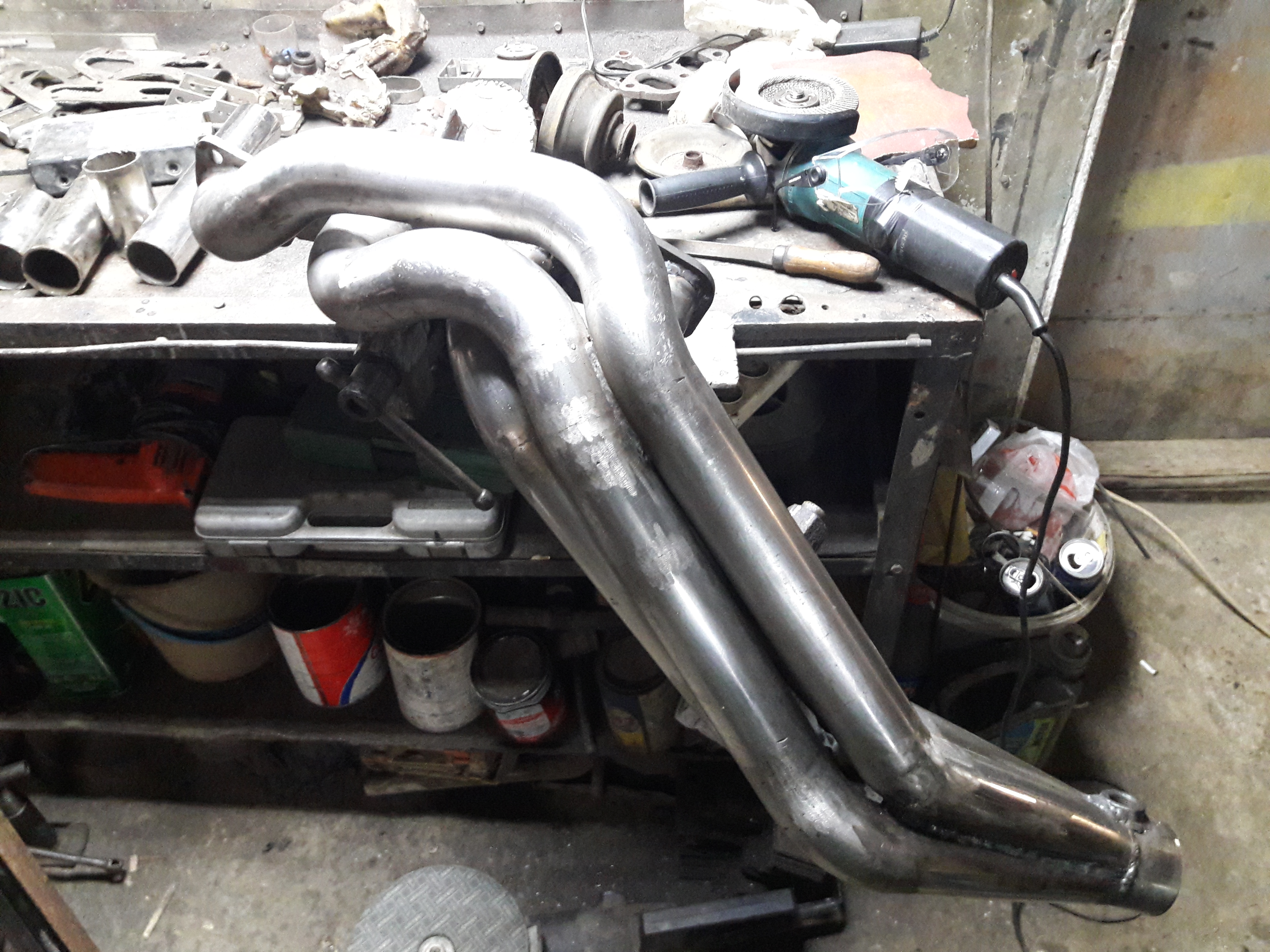 Закончил я последние работы над пауком левой головки блока. На данный момент приступил изготавливать паук на правой головке блока. Места с права поменьше будет чем с левой, что немного усложняет процес. Но ничего сделаю. Решил попробовать изготовить поворот из маленьких отрезков трубы, видел такие работы часто делает московская фирма турбоворкс. От этой идеи отказался, получается как то мерзковато, поэтому остановился на проверенном варианте делать как и раньше из отводов.