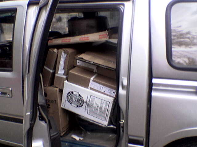 По моим прикидкам в него загружено (это все плотно упакованное ДСП) около тонны. :shock:
