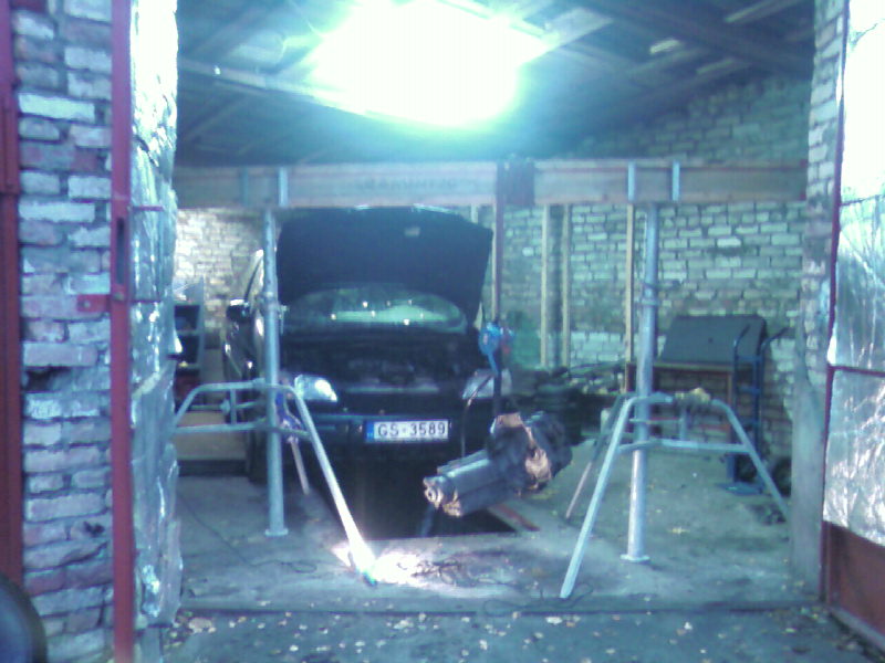 Да - один, пришлось вниз-вверх раза четыре-пять побегать, пока поднимал и выравнивал новую коробку, нижняя стойка ещё помогала, та что в яме была. Гараж да - хорош, но это не мой, а соседский.