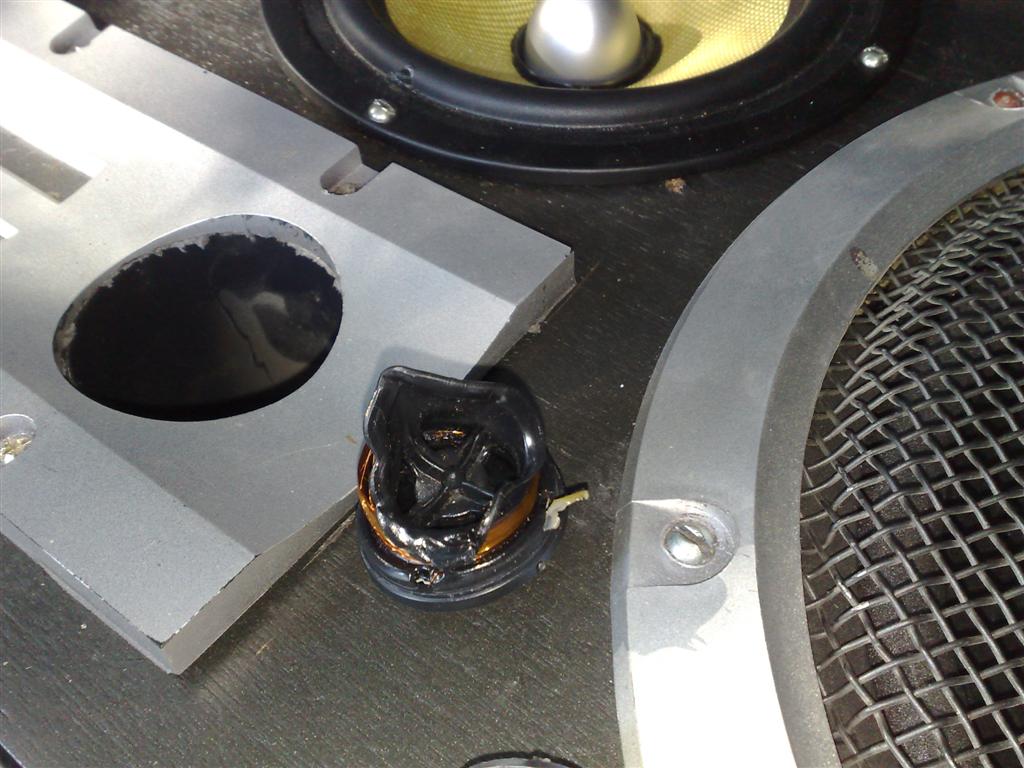 Короче, нашёл я мегаспеца по аккустике. Долго он экспериментировал с моими колонками. Подъезжал я один раз-подключили, не то. Приехал во второй раз-подключили вроде всё гут. Короче, вроде как 2 саба у меня сзади получилось. Я грю: давай пищалки добавим. Он мне: не надо. Я : давай! Короче, уговорил его. Поставили временно ещё две пищалки, всё гут, поехал я домой. Через 10мин. слышу что в машине воняет чем-то паленным. Сел на измену, всё выключил, доехал до дома. Лазил, смотрел, вроде всё нормально, а в машине вонь стоит. Я даже наночь всё ценное с машины домой забрал, вруг думаю, чаво случиться. Утром отъезжаю, через 10 минут опять вонь конкретная. Я багажник открываю и смотрю: пищалка реально рассплавляется на моих глазах... А потом тока пшик! и разорвало её при мне прямо...И дымок пошёл... На второй колонке не расплавилась, но замолчала. Прикольно...