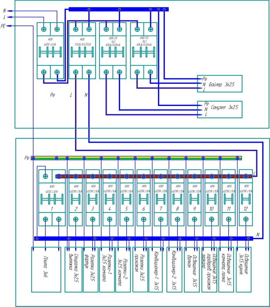 Вот тебе для примера схема щитка моей ОДНОКОМНАТНОЙ квартиры :D