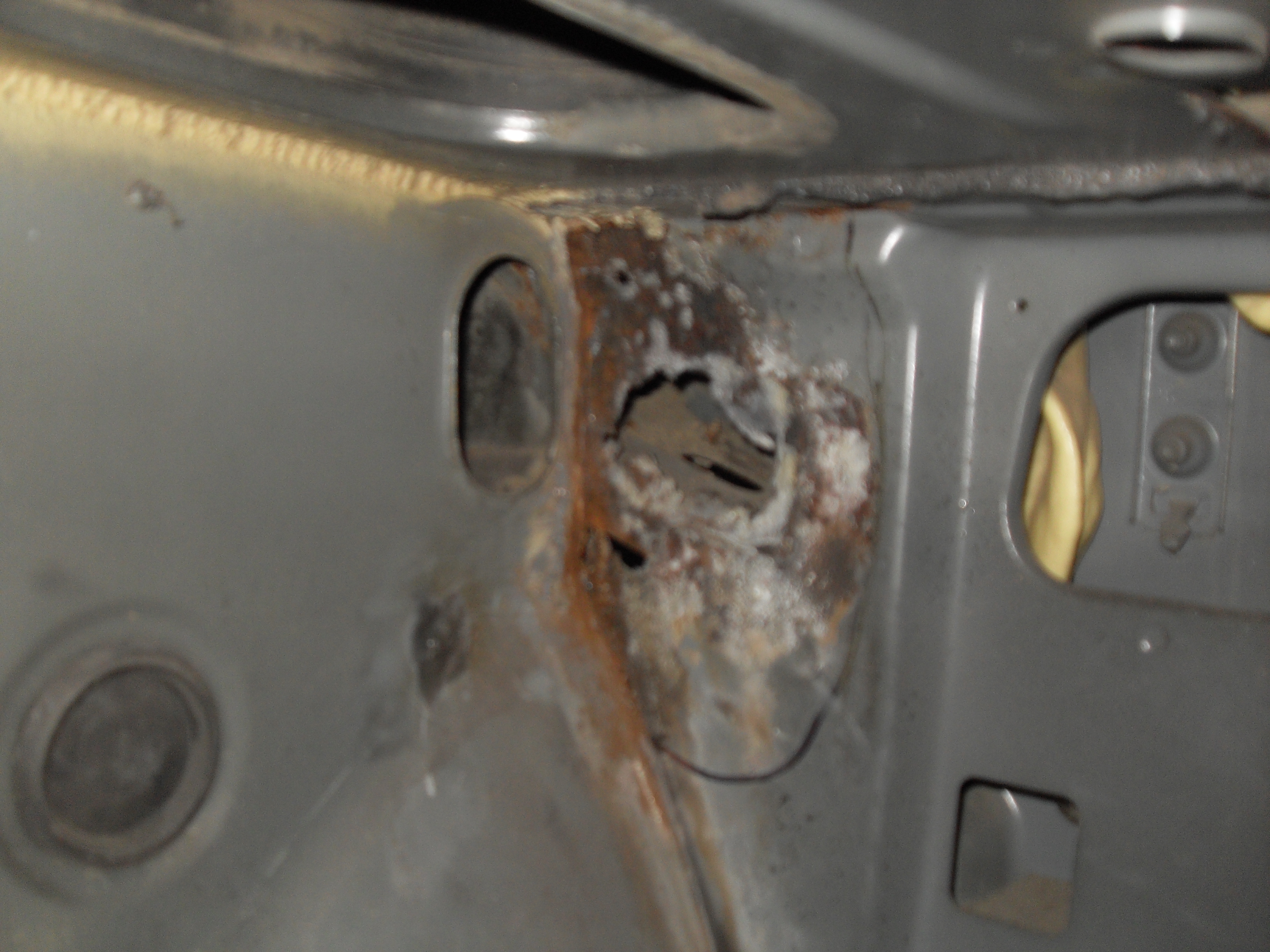 Внутри он не подлазит потому что последовательность сборки на конвейере и при ремонте не совпадает - при полной сборке доступ для сварочного робота (с головкой точечной сварки) есть всегда.