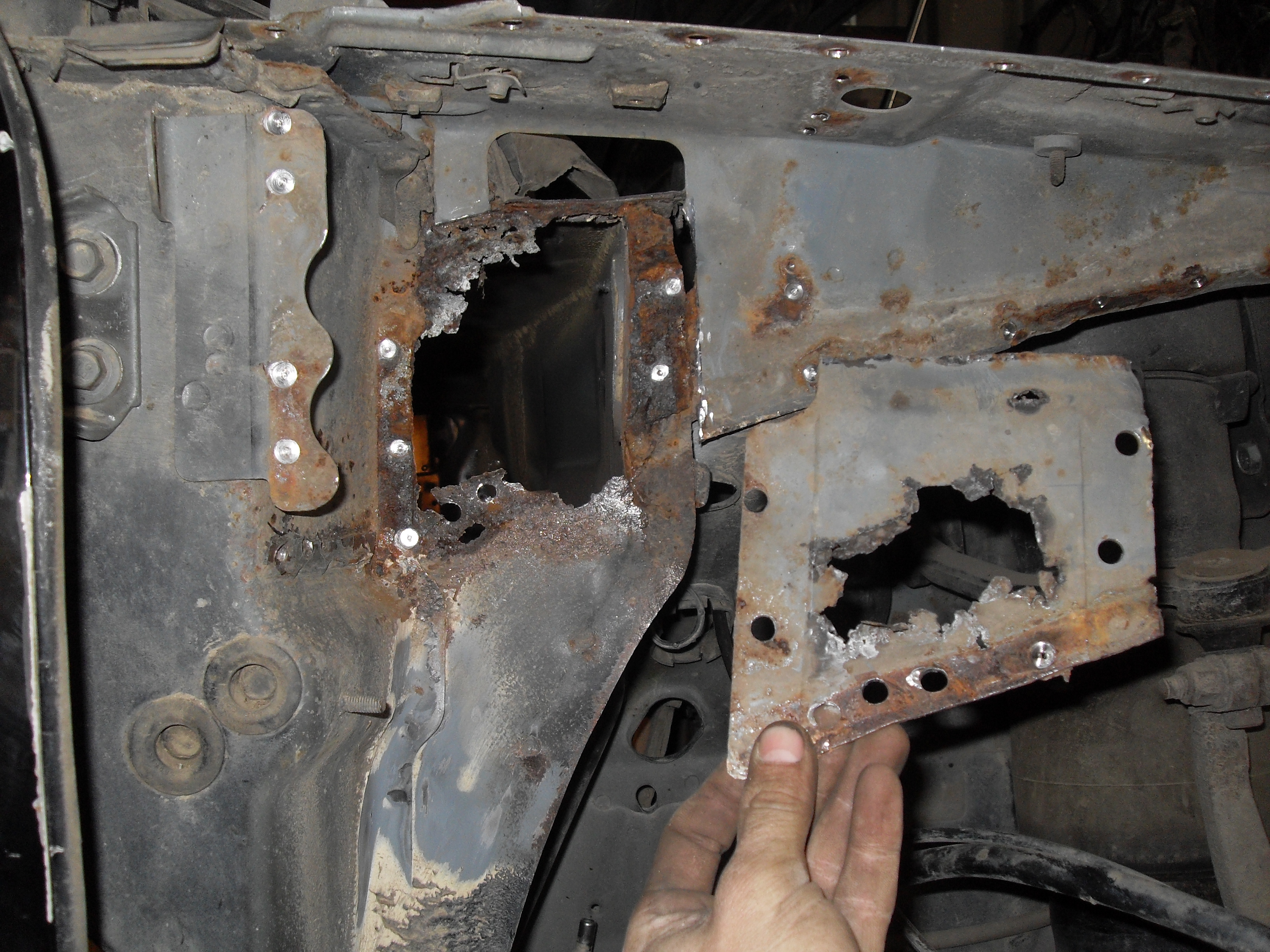 Ну вот в продолжение темы салона. Всё заварил кроме одного верхнего угла. Там конечно капитальный кариес. Снял полностью усилитель крыла и начал восстанавливать угол. Фото в студию!