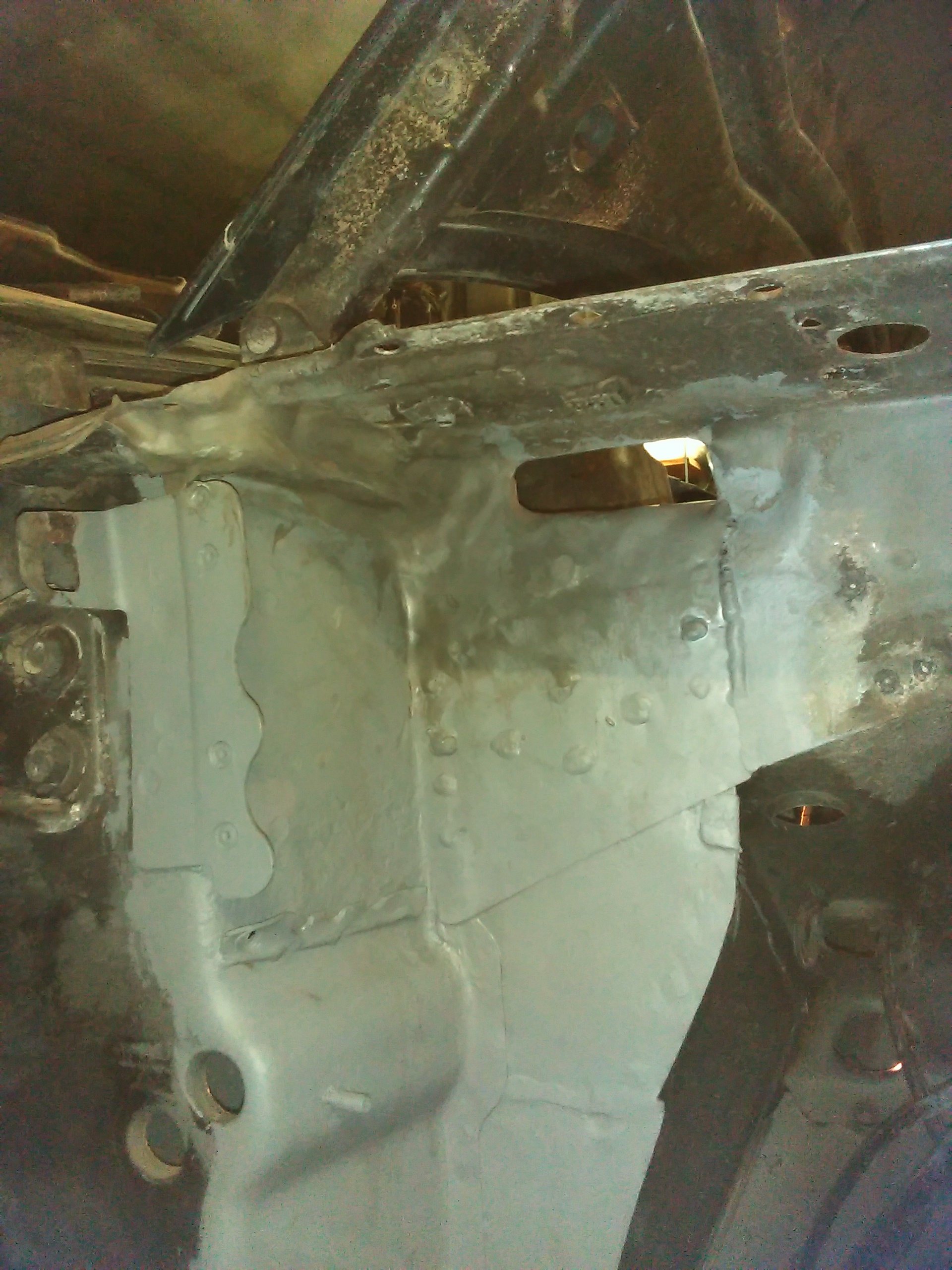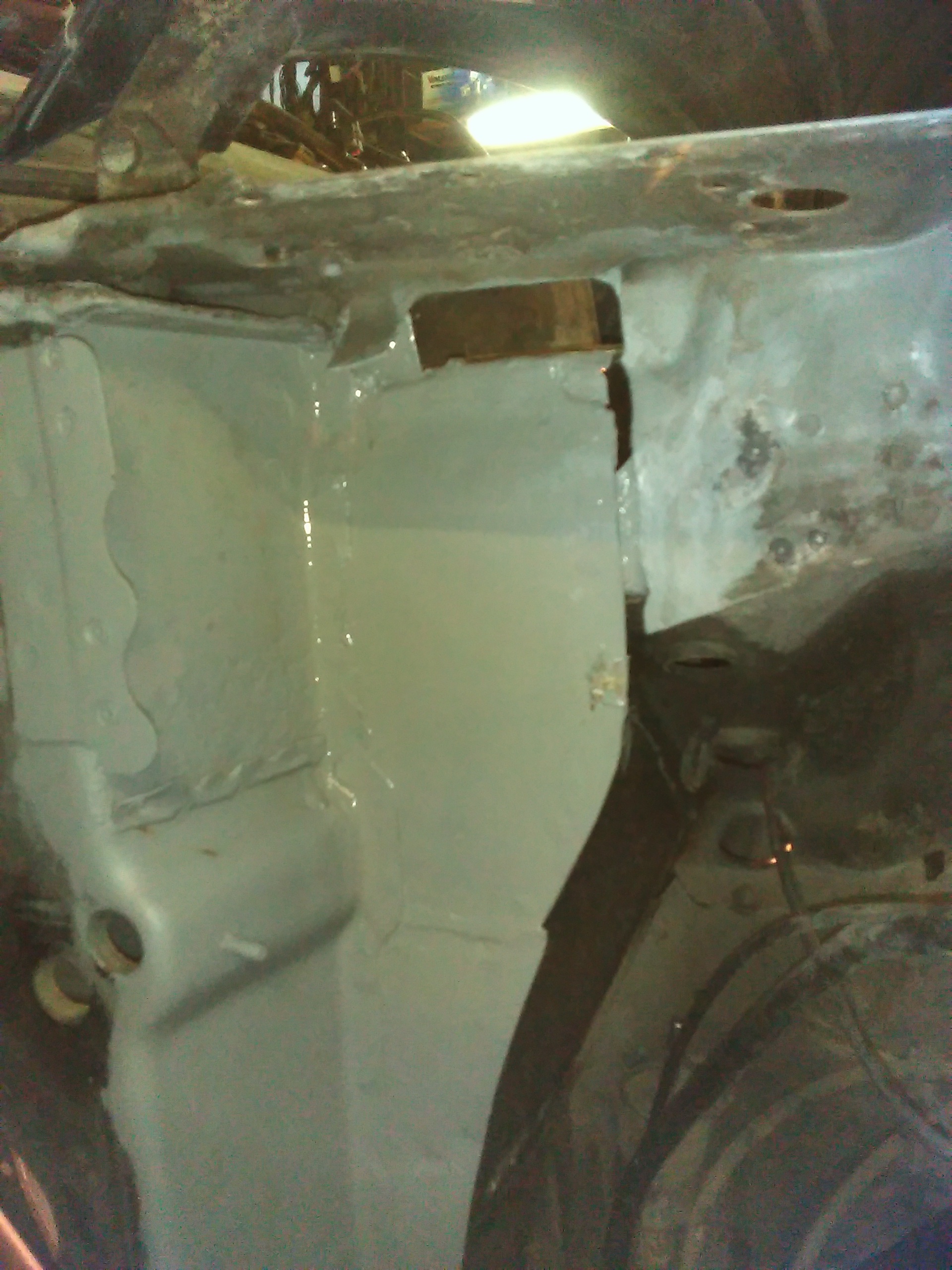 А вот и усилитель крыла крыла восстановлен, угол весь на который страшно было смотреть приобрёл человеческий вид. Ну с правой стороной закончено, осталось только зачистить сварочные точки и швы.