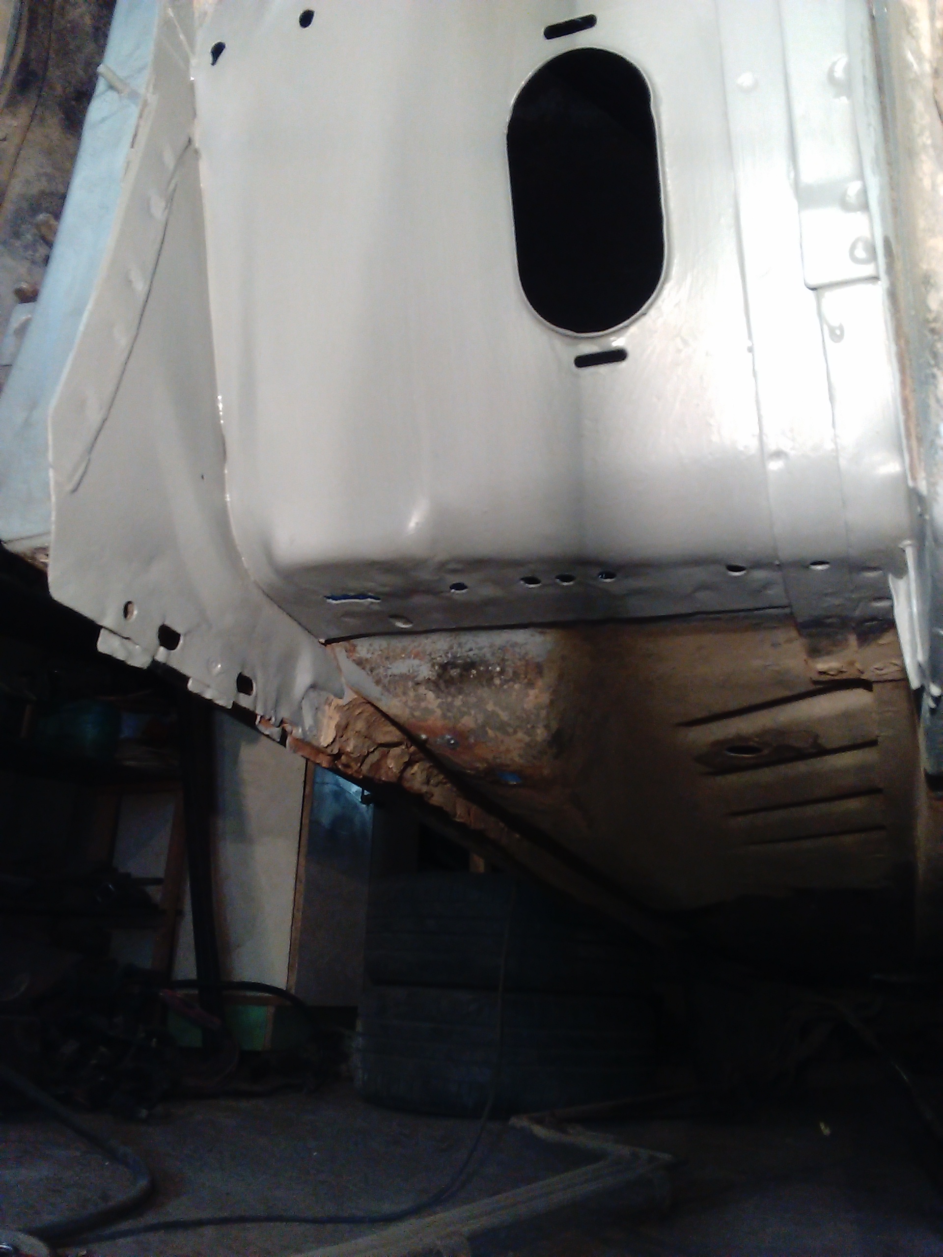 А ещё с правой стороны вскрыл порог передную половину, задную часть я уже давно сделал. А сподвигло меня на это замятые места от донкратов. Думал вытинуть не вскрывая но опасался что усилитель будет оторван от порога, и я оказался прав. Кстати по сварке кузова я наконец-то закончил. Далее пауки, вытаскивание мотора и снятие подрамников, сварка каркаса и помещение туда кузова на перевертышах и поездка к пескоструйщику ( только днище). Сегодня ещё выложу фото этих самых сходов 4-1 посмотрим что у меня получится!