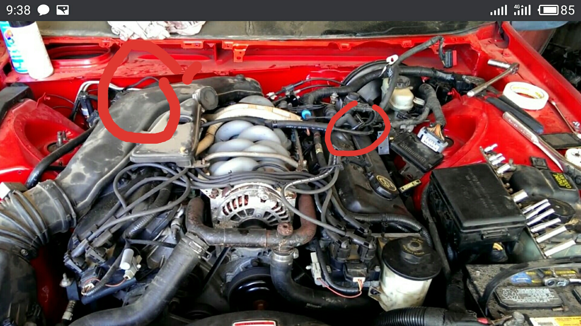 на фото 2 трубки,с права выход с двигателя,слева такая же,обвел просто место куда она потом идет,ясно в воздухан.так вот вопрос на выходе должны быть выбросы,или ваккум?я склоняюсь к датчику заслонки,мастер говорит что под крышкой клапанов должен быть клапан,такой же как идет справа где я обвел...есть там такое?