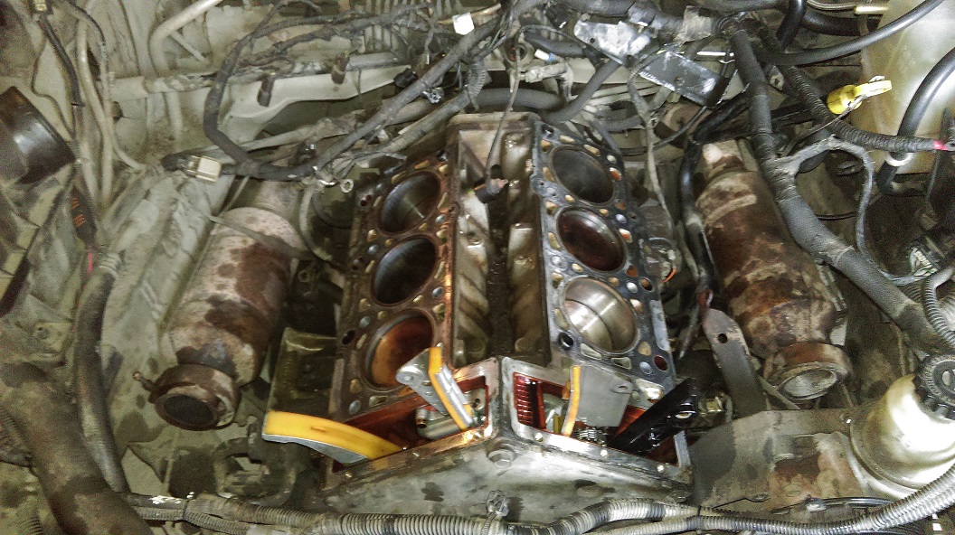 Спасибо Дим, открутил, но шкив не удалось снять, мой съемник слишком длинный и упирается в радиатор, возьму в аренду у ребят с ближайшего сервиса. Головы снял, визуально трещины на блоке и головке в районе второго цилиндра не наблюдаются, прокладка тоже похоже цела, но по поршню и кромке прокладки видно что именно в этом цилиндре бывал антифриз. Головки перевернул, залил керосин, оставил до понедельника.