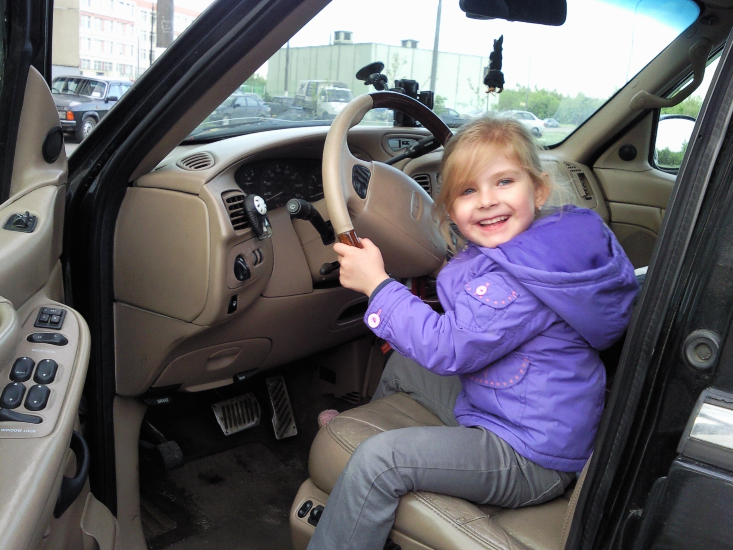 Не знааааааю.... Мой уже на Аэростаре попытался до педалей дотянуться. Иногда в деревне между своим домом и родительским он сидит у меня на коленях и "рулит". А тут чо-то сидит, но начинает сползать вниз, ну не обратил на это внимание, пока машина колом не встала - тормоз-то широкий :D