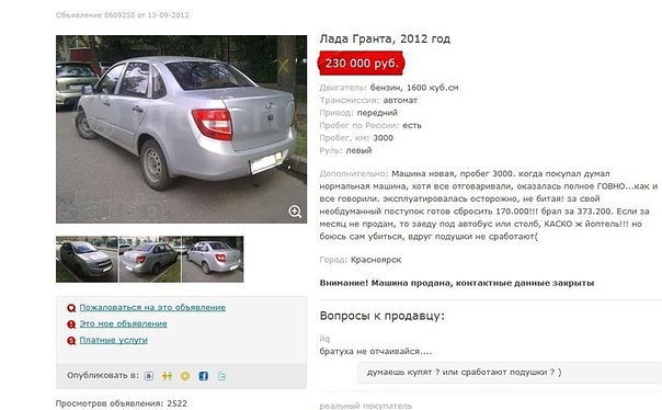 Вот как НЕ надо машины продавать..