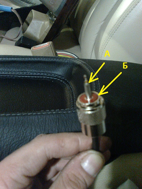 Центр - это плюс, внешний корпус - минус. Минус (оплетка кабеля) идет на кронштейн крепления антенны (винтовое обычно соединение с оплеткой), которая в свою очередь идет на кузов авто. Не замкни смотри
