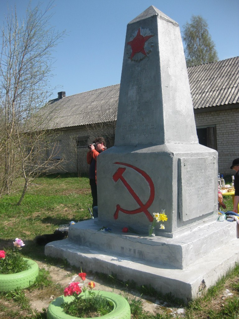 тут. Не помню про правильность нахождения обелиска именно на этом месте, надо будет ещё раз уточнить. Единственное, обелиск этот помню с детства - автобус, который курсировал между Псковом и райцентром, в чьей стороне была деревня дедушки с бабушкой (во Пскове мы не жили, а просто ездили туда как раз из деревни в магазины или так погулять), иногда останавливался около него, мужики покурить выходили. Эти остановки не были как-то связаны с обелиском - просто технические остановки, буквально на несколько минут.
