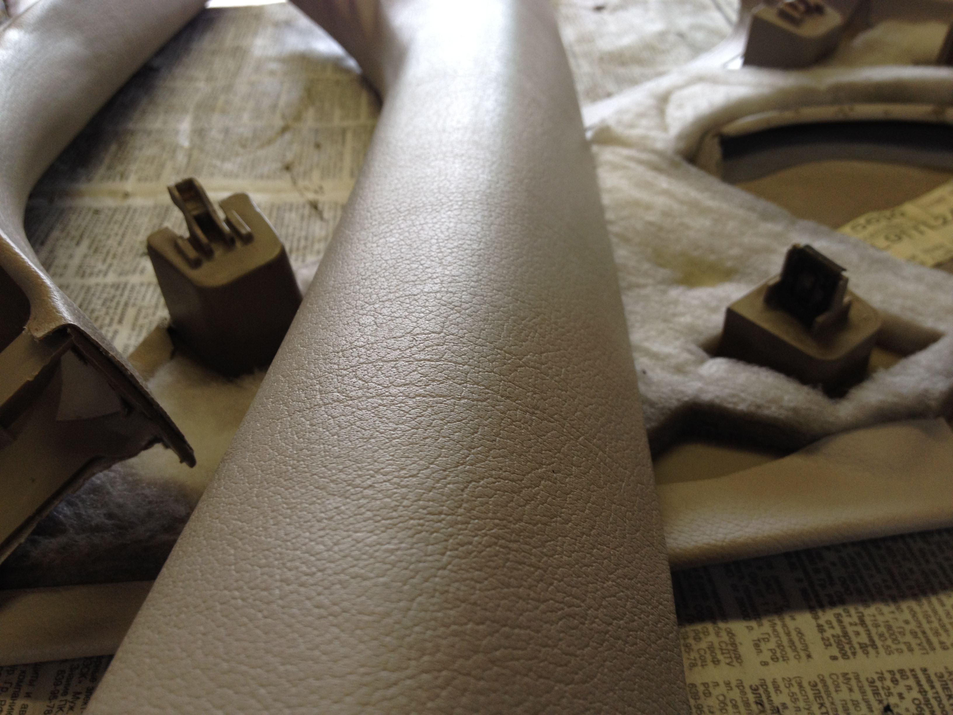 Шкурить пластик формованный под кожу - то еще занятие: слишком высокая цена на выходе получится (если только для себя заморочиться, но для себя есть более простые и дешевые способы). А ведь эта дрянь стоит у Вас как космический аппарат!
