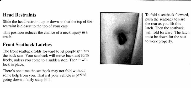 Спинка переднего сиденья складывается вперед для пропуска пассажиров на заднее сиденье. Спинка будет складываться вперед и назад свободно, пока вы резко не затормозите (или не вьедете в кого-нибудь