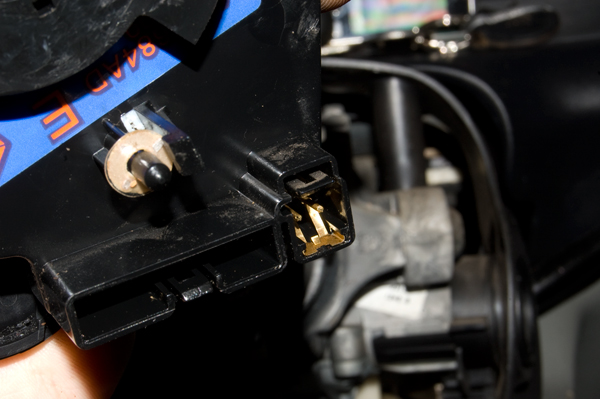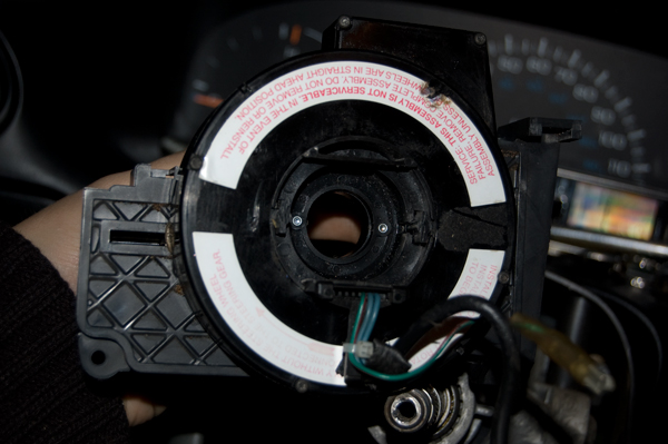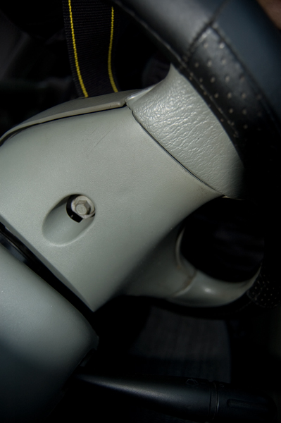 Далее берем длинную отвертку накрест и пытаемся выкруть три шурупа, распологающиеся внизу в колонке. Они вот такие: Довольно длинные *16 . Как только выкрутили все три шурупа. Можно снимать пластик, он на защелках, его тупо срываем. Перед нами предстанет такое диво: Что бы снять коробку со спиралью, надо снять блок рычага поворотов. Он держиться снизу и сверху на двух саморезах: После чего отпускаем его в свободное висение. Коробка со спиралью подключена двумя разъемами:
