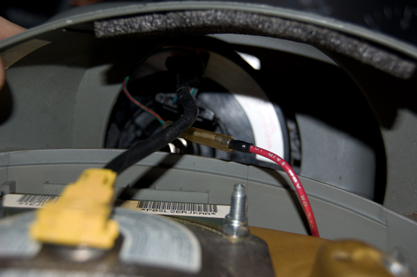 Пиропатрон просто отсоединяется вверх (можно его отверткой подковырнуть):Всё, от подушки мы освободились.