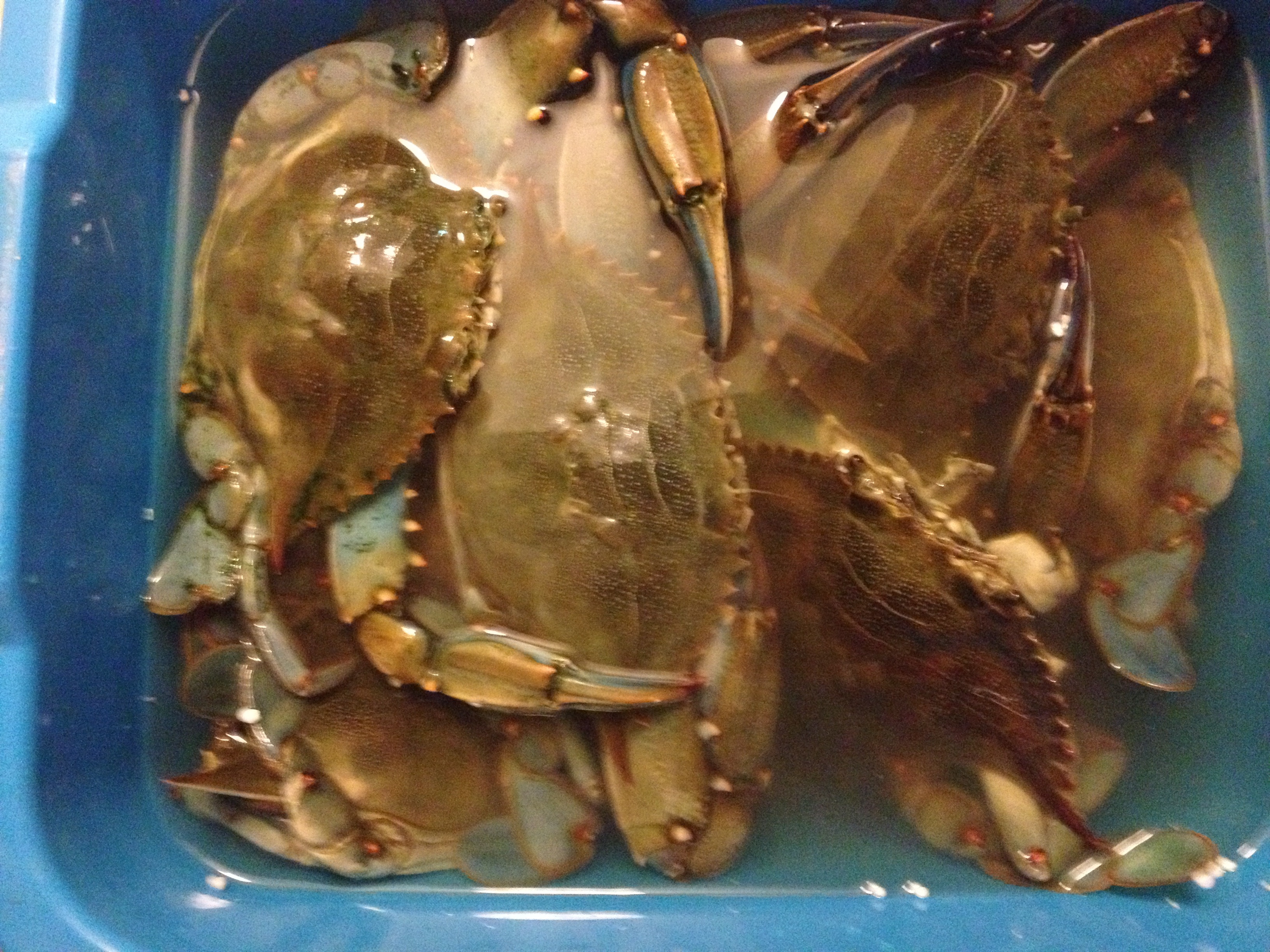 Крабы покупные, свежак. Называются голубые крабы. Стоят на наши деньги здесь копейки. Уже сварил и половину с'ел. 10 шт оказалось реально много, вдвоем с'есть не смогли. Я думал, что в крабе как в раке, жрать нечего, однако это совсем не так.